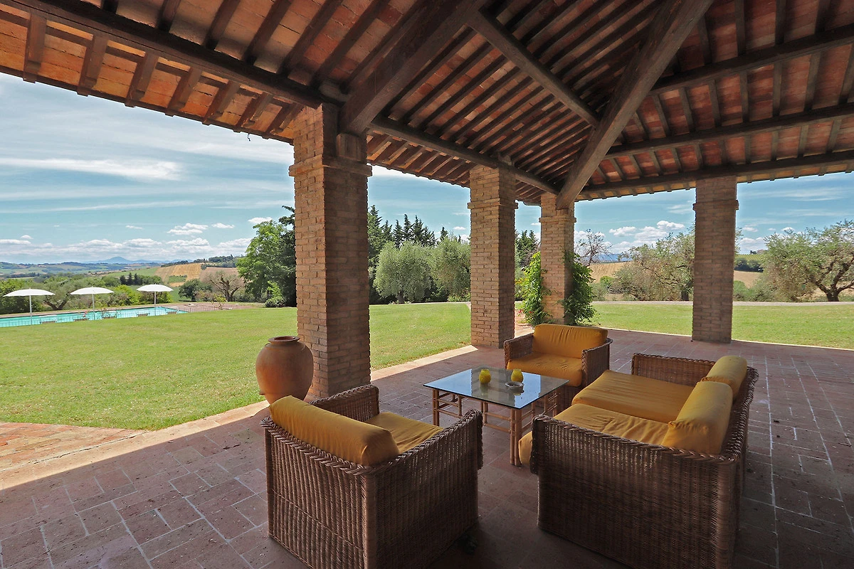 Villa Monica è una bellissima villa privata con piscina nelle Marche, ubicata a pochi minuti da San Costanzo e a soli 9 Km dalla Costa Adriatica. Ricavata dall'agriturismo di famiglia degli stessi proprietari, la villa è immersa in un contesto tranquillo e riservato ed è stata arredata con gusto e praticità. La location è ideale per trascorre le proprie vacanze in pieno relax circondati dai pittoreschi paesaggi della campagna Marchigiana, ma al tempo stesso la vicinanza al mare e alla città di Fano offre la possibilità di visite, escursioni, shopping negli outlet delle grandi firme e divertimento nei locali balneari della cittadina. La proprietà, interamente recintata, è completata da un bel giardino ed una magnifica piscina con vista panoramica. Inoltre la villa offre ai propri clienti ampi spazi esterni dove gustare cene indimenticabili.