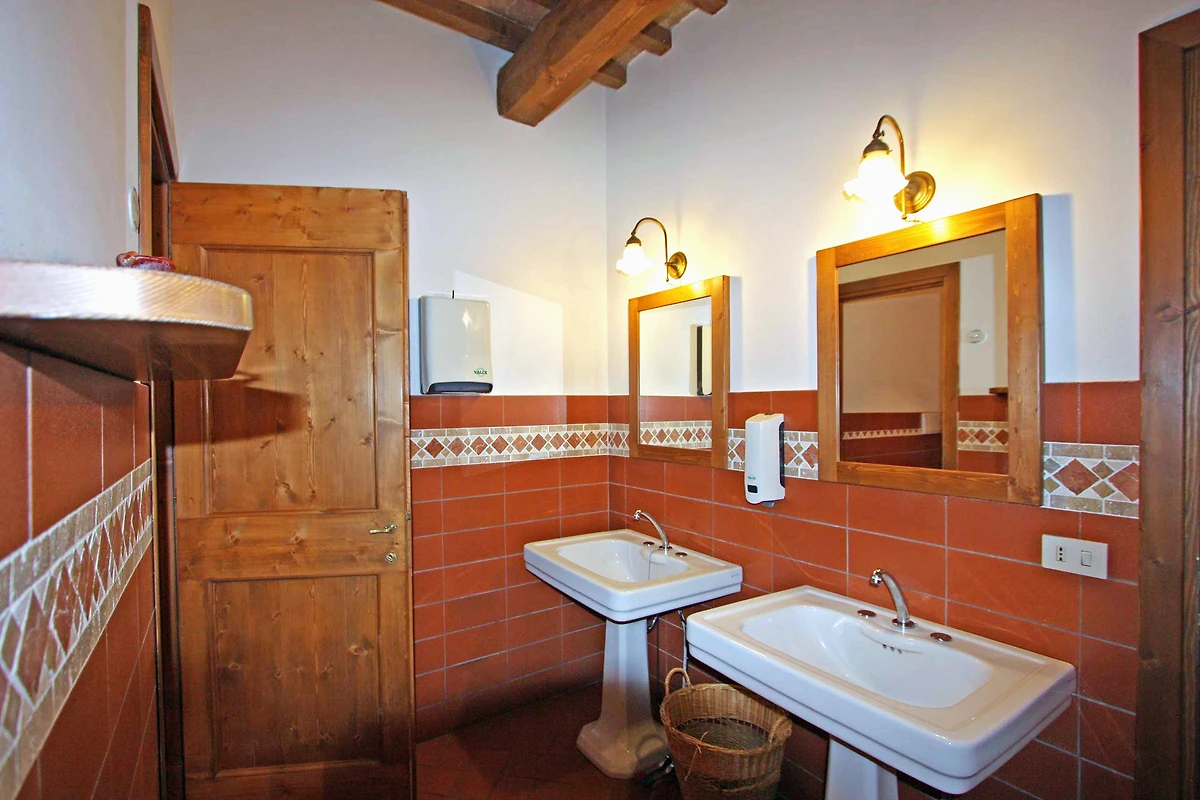 La villa è disposta su due piani. Al piano terra troviamo un ampio salone con camino, tavolo da biliardo, sala pranzo, cucina professionale, due toilette e zona lavanderia. Al piano primo, al quale si accede tramite un'ampia scala, troviamo un grazioso disimpegno, una camera matrimoniale con bagno en suite con doccia, due camere matrimoniali con bagno en suite con doccia (possibilità di aggiungere un letto singolo in una delle stanze), una camera tripla, una camera matrimoniale e bagno con doccia.