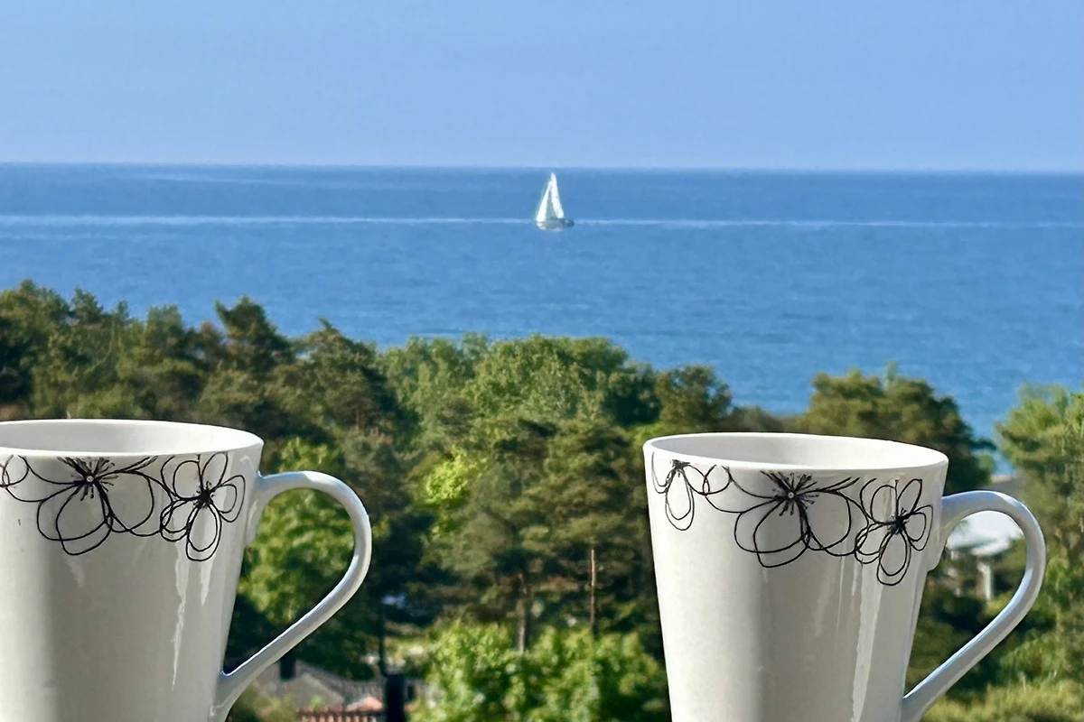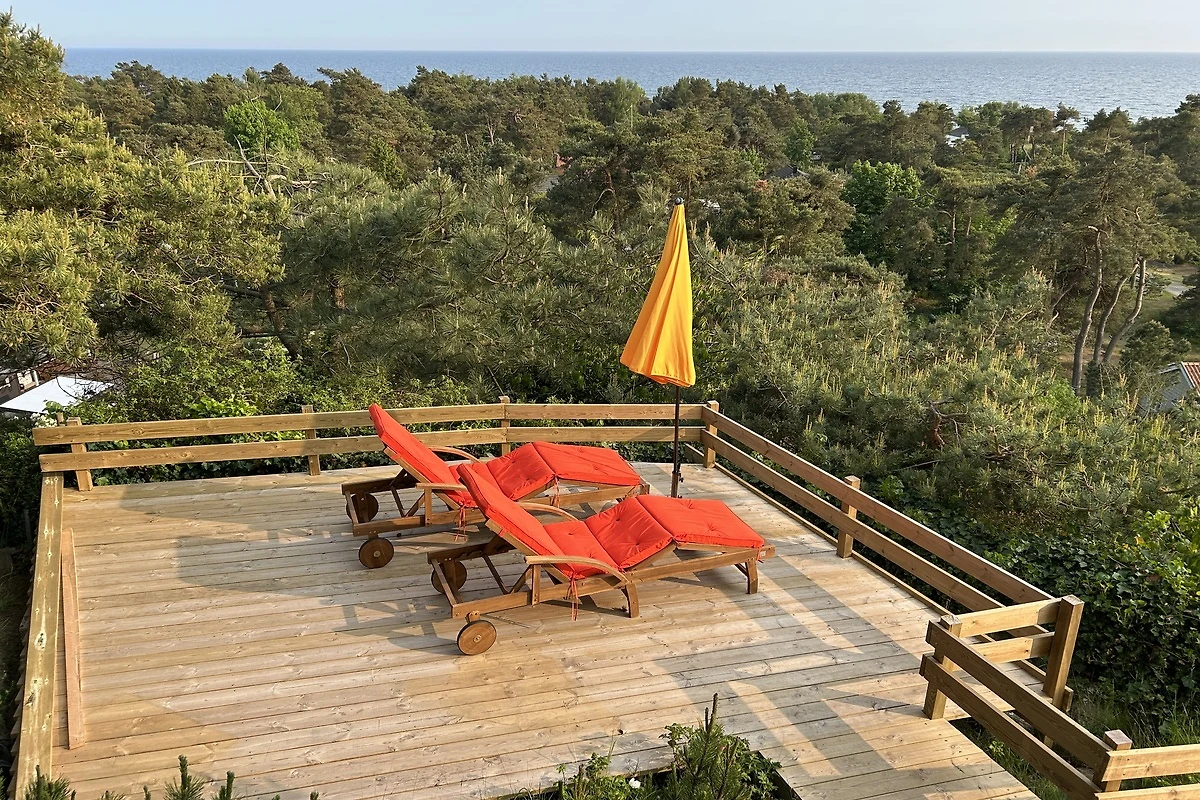 Come un nido di rondini, la piccola casa con la vista grandiosa si aggrappa al versante meridionale delle morene terminali, inondata di luce, arredata in modo moderno e accogliente. Si lascia l'auto in fondo al parcheggio, si sale su per la collina alta circa 20 metri e si viene premiati con una fantastica vista panoramica sul Mar Baltico!