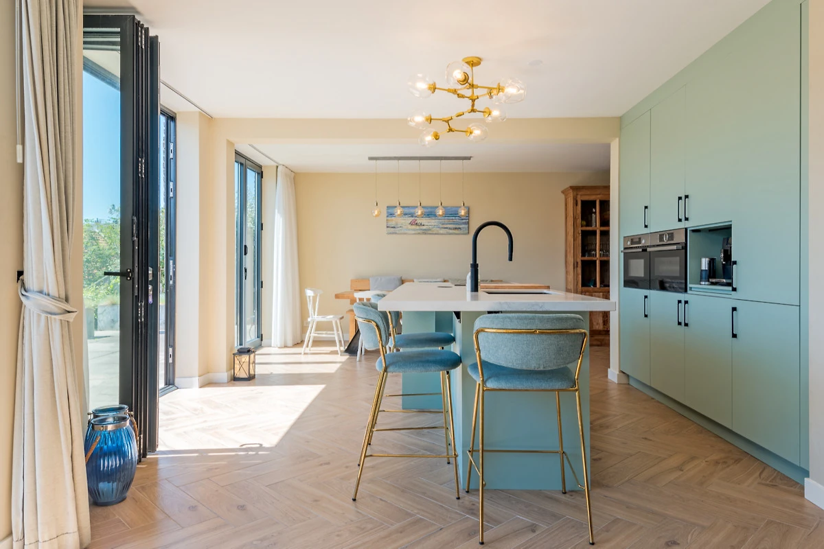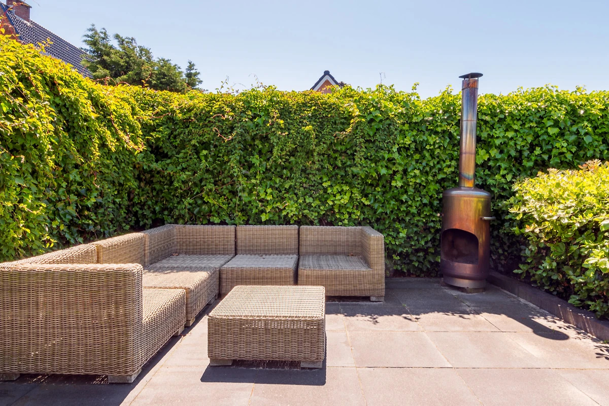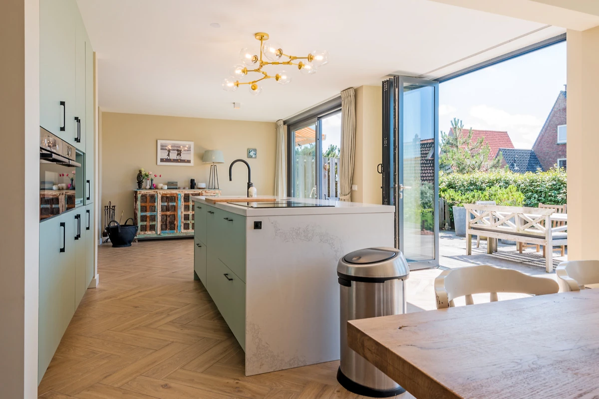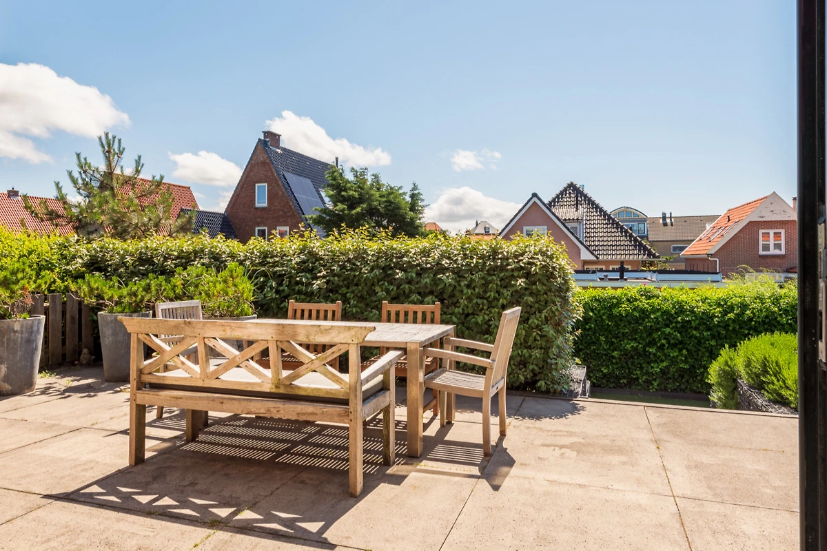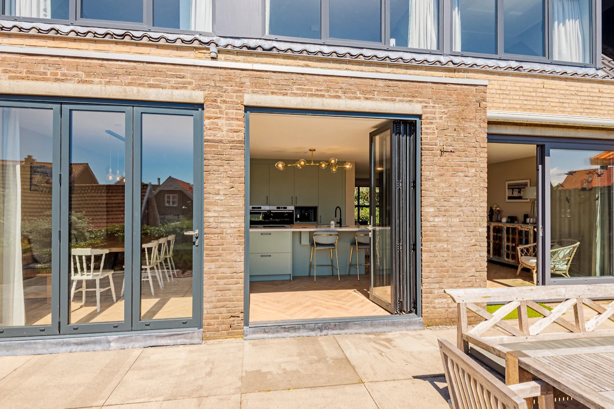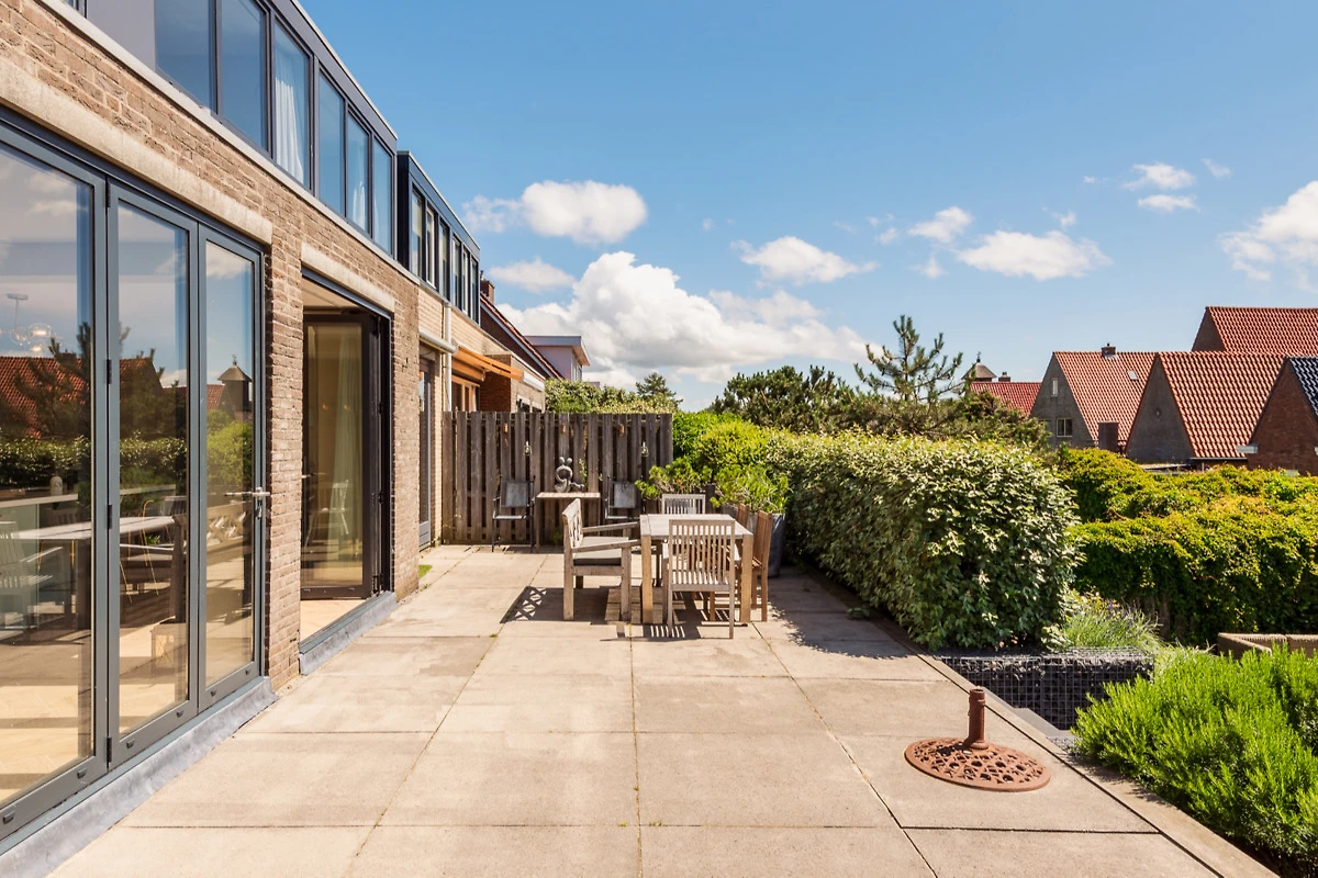 Attraverso le porte scorrevoli si entra dove si può mangiare fino a tarda ora o così con i vostri parenti e / o amici e bere e godersi il sole al tramonto al giardino. C'è una zona salotto coperto dove è possibile sedersi in giardino.