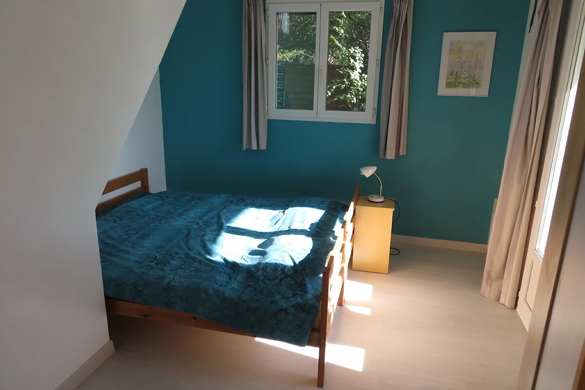 Camera da letto: 2 letti singoli di 0,80x2,00 o letto matrimoniale di 1,60x2,00 con grandi porte sulla terrazza e sulla piscina.