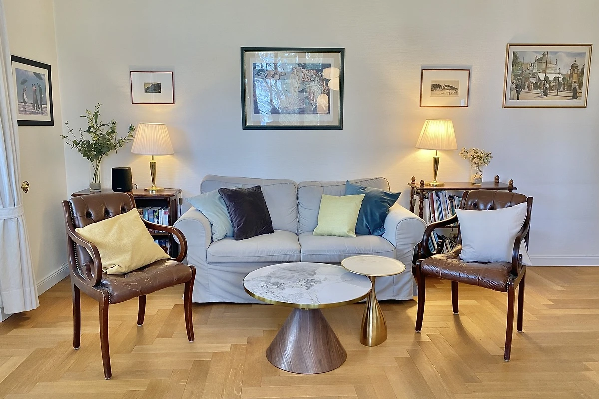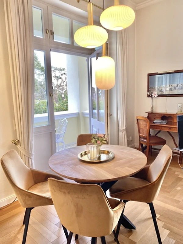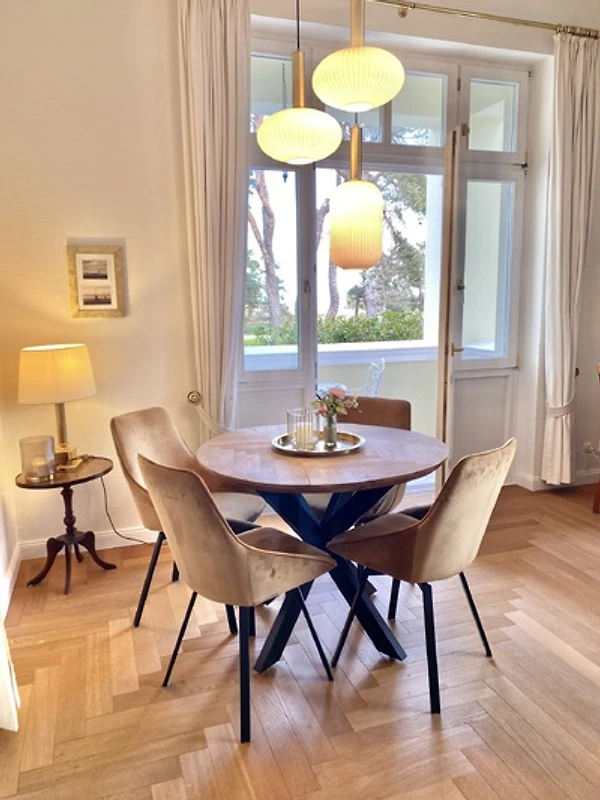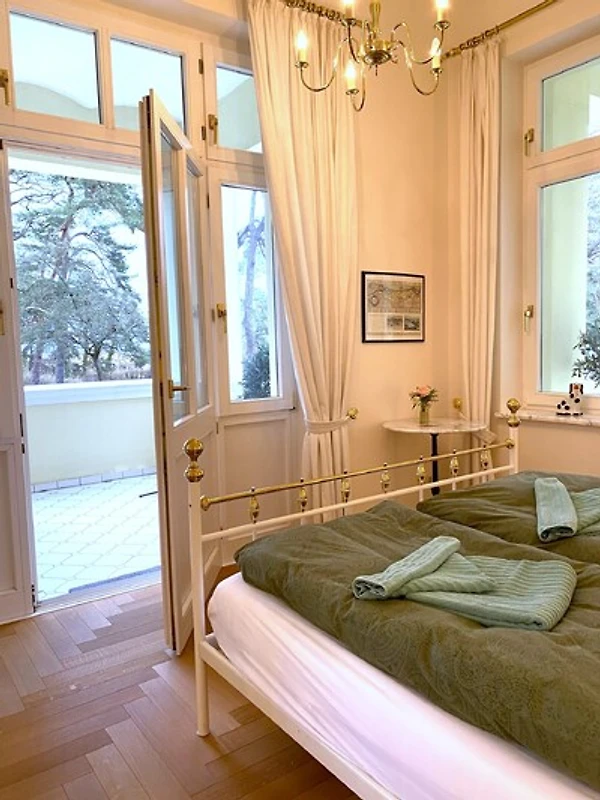 Esclusivo appartamento per vacanze a 4 stelle a Villa Caprivi con vista mare da tutte le camere sul lungomare senza auto nel tratto di spiaggia più bello del quartiere delle ville di Heringsdorf tra i moli di Ahlbeck e Heringsdorf.