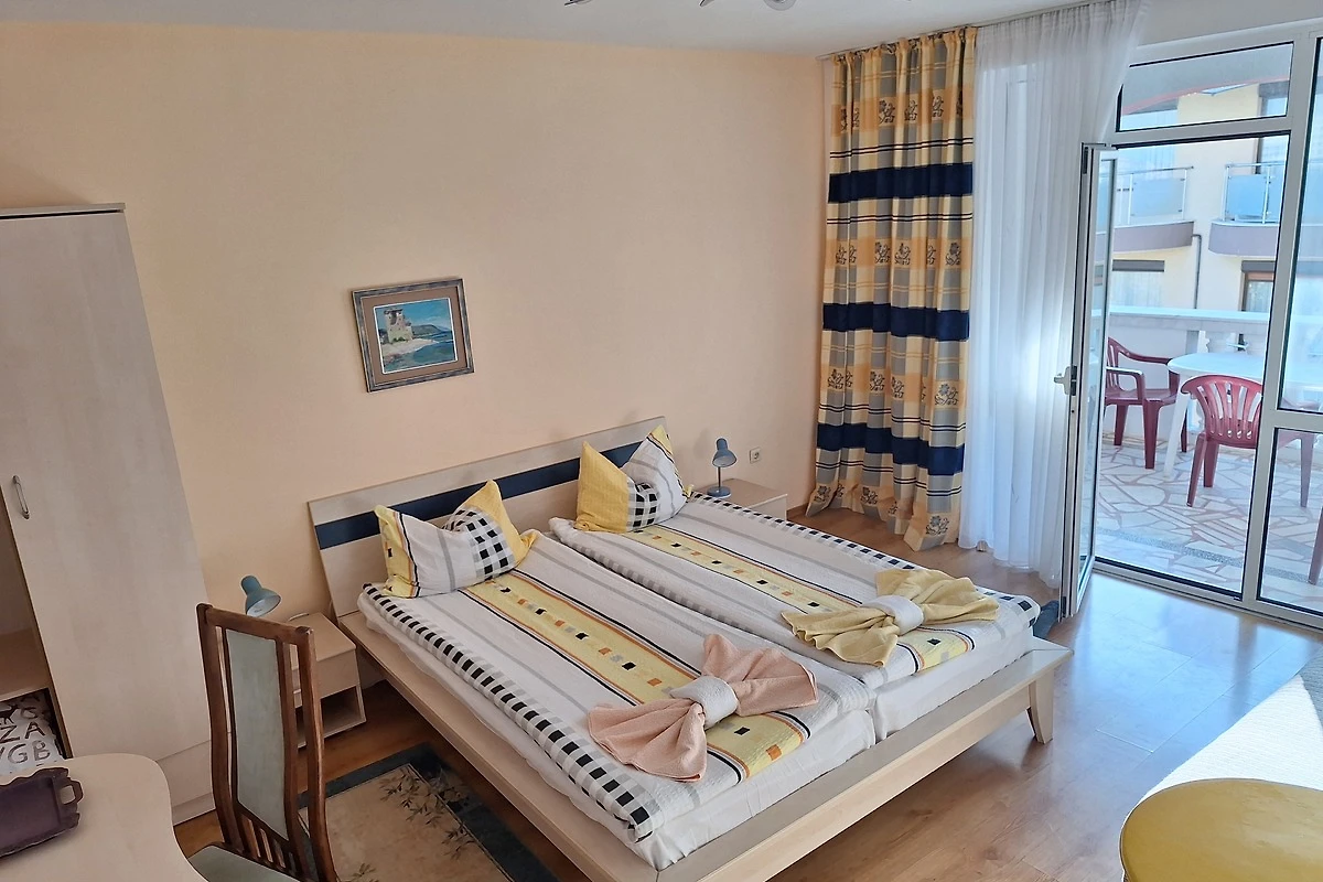 | Prezzo 2023: Maggio, giugno e settembre - per persona a notte - 12 euro Luglio e agosto - per persona a notte - 14 euro Camera vista mare: +2 euro a persona Sconti per i vostri figli nella stanza dei genitori: fino a 2 anni - notte gratuita. fino a 10 anni - sconto del 50%. Camera doppia come camera singola: 1,5 il prezzo di una persona in camera doppia Incluso nel prezzo: biancheria da letto, asciugamani, pulizia, tassa di soggiorno, parcheggio, internet wireless e uso della cucina. Trasferimento da e per l'aeroporto di Burgas e prima colazione - supplemento su richiesta. |