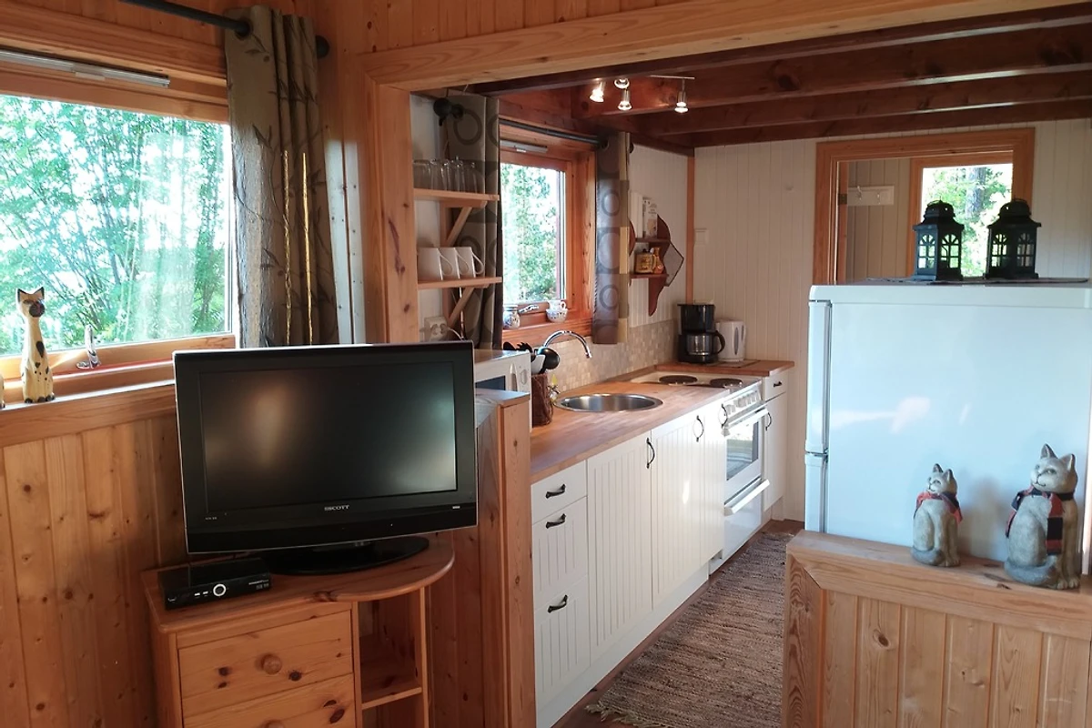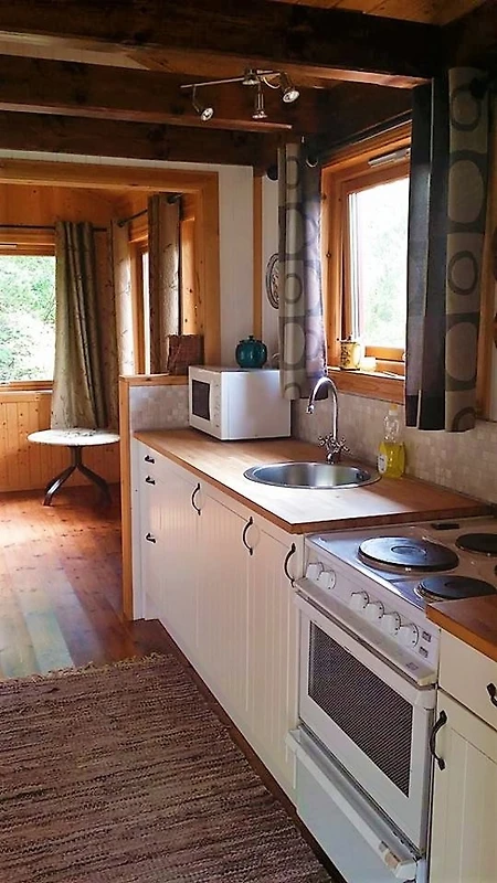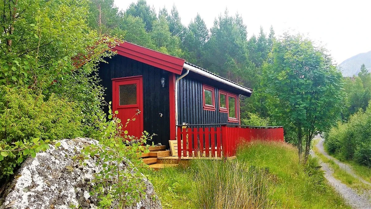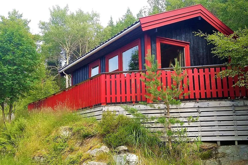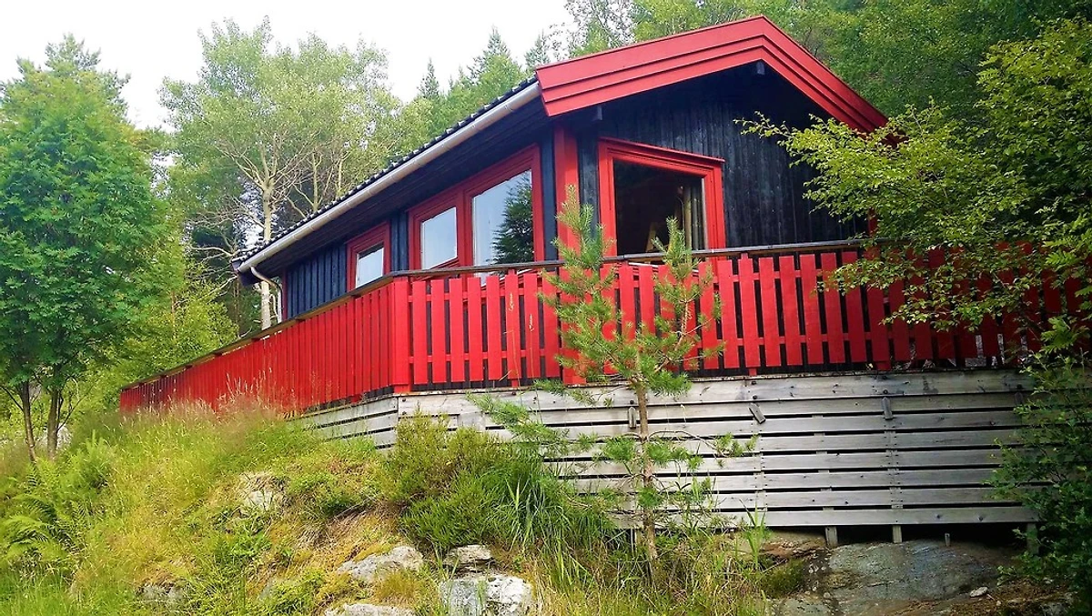 una bella casa per le vacanze in mezzo alla foresta con vista sul fiordo