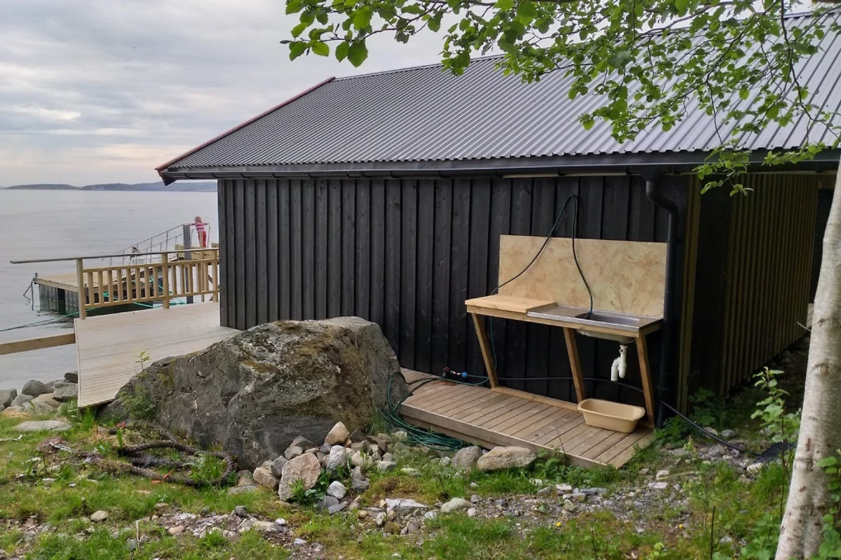 A soli 80 m dal fiordo, dal molo e dalla rimessa per le barche (il punto di filettatura è coperto, con luce e acqua corrente)