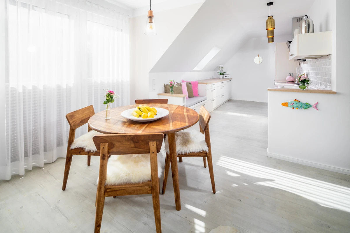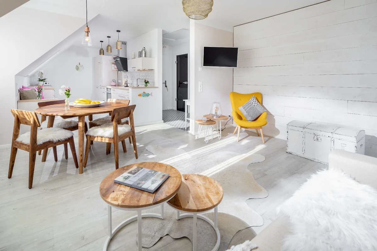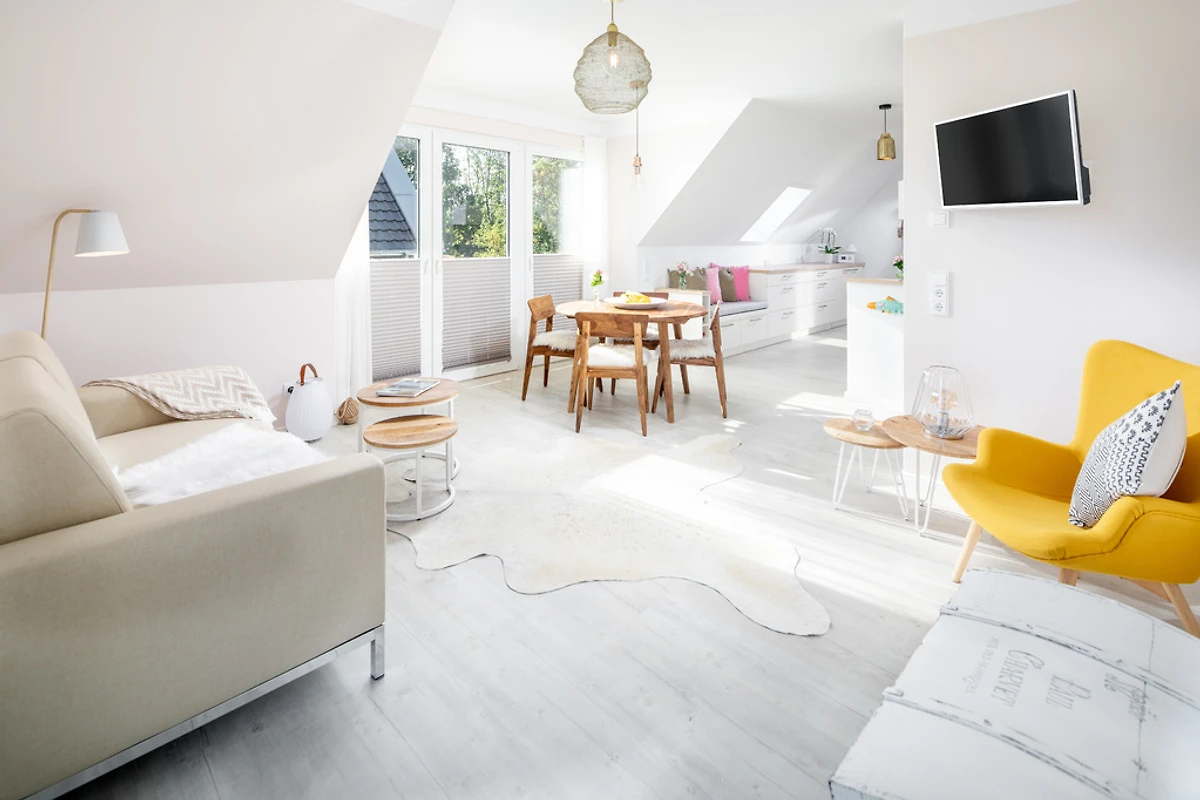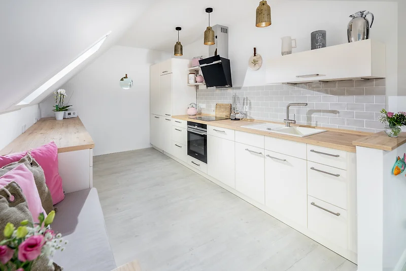 Assolutamente nuovo appartamento con tutti i comfort immaginabili. La cucina è fornita di abbondante stoviglie e utensili da cucina. Molto bello il piccolo assortimento di tè, caffè, spezie, ecc... La posizione centrale con supermercato, ristoranti e panetteria nelle immediate vicinanze è ideale. La spiaggia è a circa 10 minuti a piedi. L'auto può essere parcheggiata in sicurezza sul parcheggio privato della casa. Ci siamo trovati molto bene!