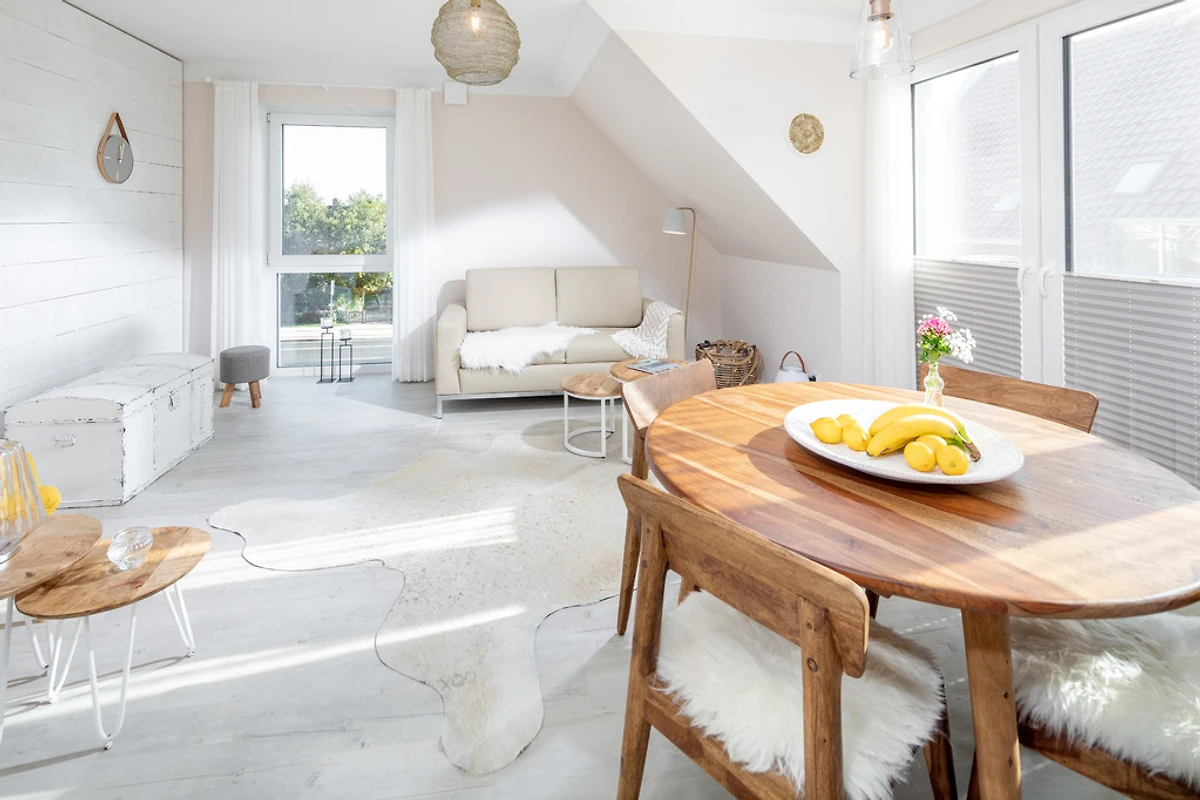 Nel centro di Norddeich, a pochi minuti dal Mare di Wadden e dalla spiaggia, si trova questo luminoso appartamento per vacanze di 2 stanze e 55 m² all'ultimo piano.
