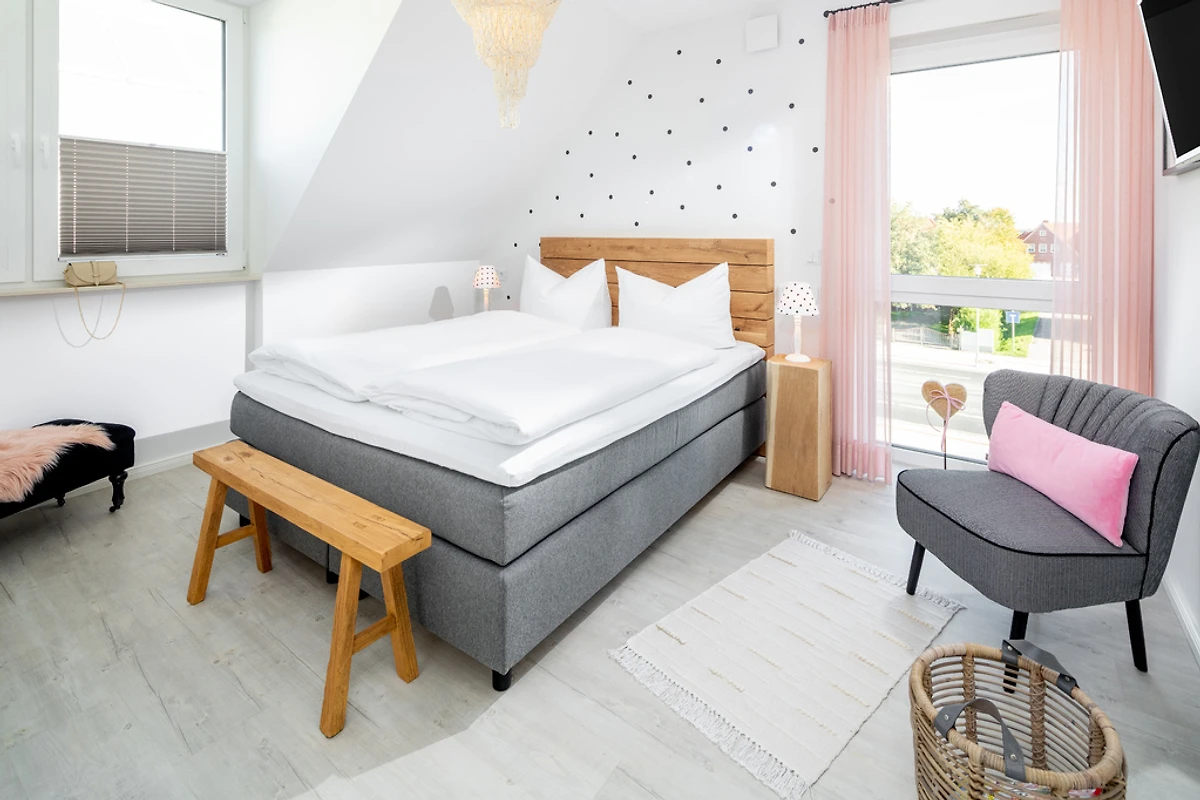 Il nome dice tutto, perché l'influenza frisona della sabbia e del mare si sente ovunque. Delicate tonalità pastello combinate con molto legno conferiscono a Sandbox 6 una sensazione di moderna accoglienza. Completato nell'autunno 2018, questo nuovo edificio presenta camere luminose con materiali di alta qualità, nonché numerosi elementi decorativi e raffinatezze tecniche per un'esperienza di vacanza unica.