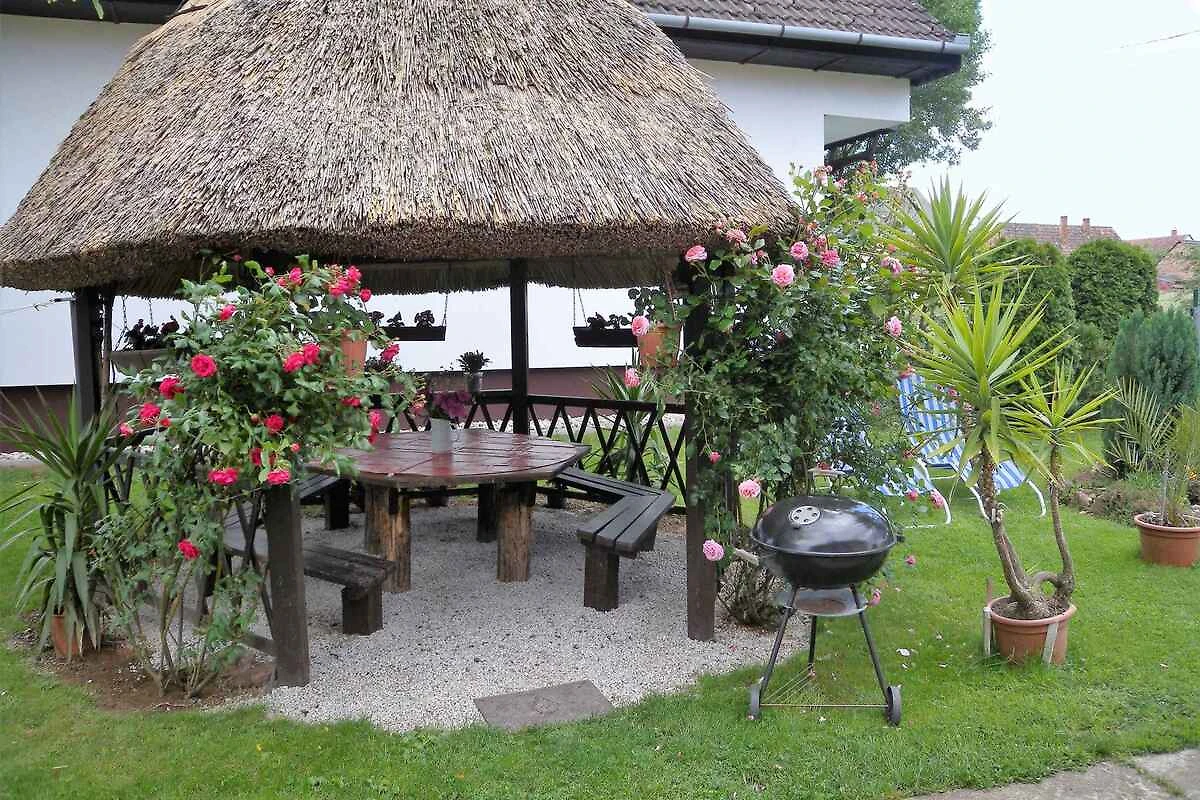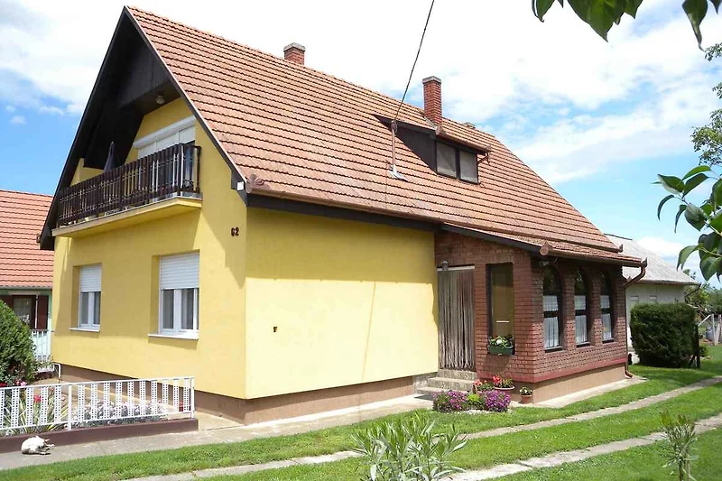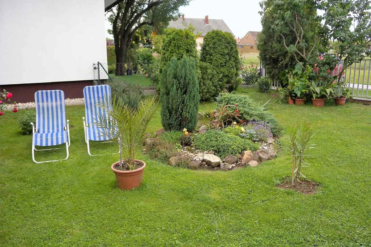 Balatonberény. L' appartamento vacanze si trova in una trama del giardino grande 150 mq con prato e fiori. Il padrone di casa vive in un altro edificio nella stessa proprietá. Parcheggio sulla proprietà.