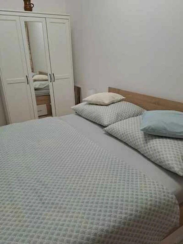 L'ingresso del vostro appartamento conduce sopra una scala esterna. La scala esteriore è ripida Sala da pranzo con TV. Camera da letto con 1 letto matrimoniale e accesso al balcone. Camera da letto con 1 letto matrimoniale. Cucina con stufa a gas (2 fiamme), frigorifero (scomparto del ghiaccio) e caffettiera. Bagno con doccia, 1 lavandino e finestra. WC separato con WC.