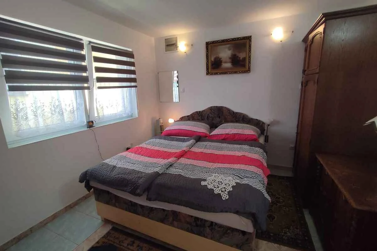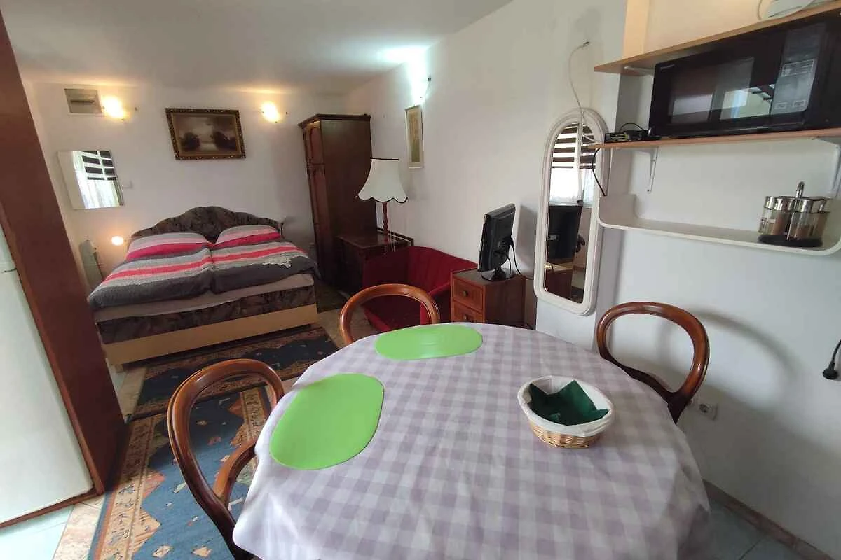 Balatonboglár. Lo studio si trova in una trama del giardino chiuso, grande 500 mq con prato, fiori, arbusti e alberi, delimitata da una recinzione. Il padrone di casa vive in un altro edificio nella stessa proprietá. Sul terreno si trovano anche gli appartamenti identici BAL BOG 002 (ciascuno per 4 persone) L'accesso avviene vicino a una strada secondaria (asfaltata). Parcheggio (per 1 auto) sulla proprietà e strada davanti alla casa. 1 posto auto per appartamento a pagamento altro sulla strada.