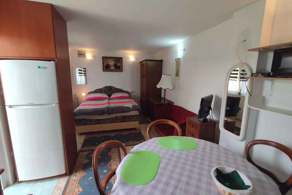 L'ingresso del vostro studio é a livello del suolo e conduce sopra la terrazza é 30 mq grande. Soggiorno/camera da letto con 1 letto matrimoniale, TV e accesso alla terrazza (30 mq, coperto, mobili da giardino, 1 tavolo, 2 sedie). Angolo cucina con zona pranzo (4 posti), stufa a gas (1 fiamma), frigorifero (scomparto del ghiaccio), microonde e caffettiera. Bagno con doccia, 1 lavandino e WC.