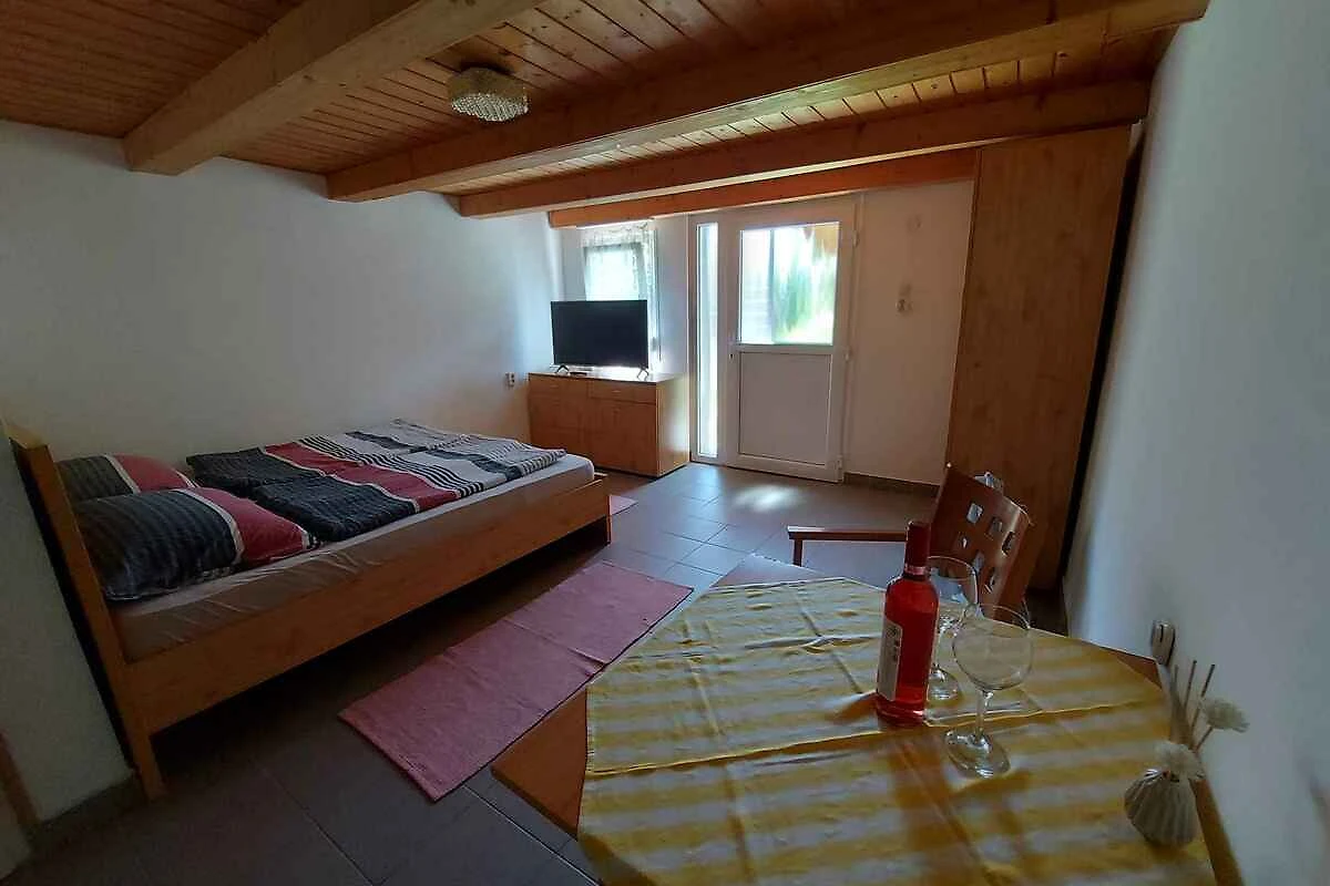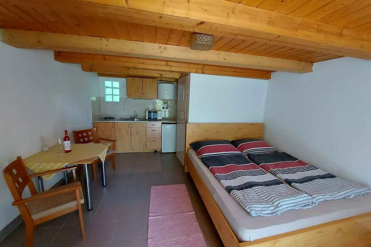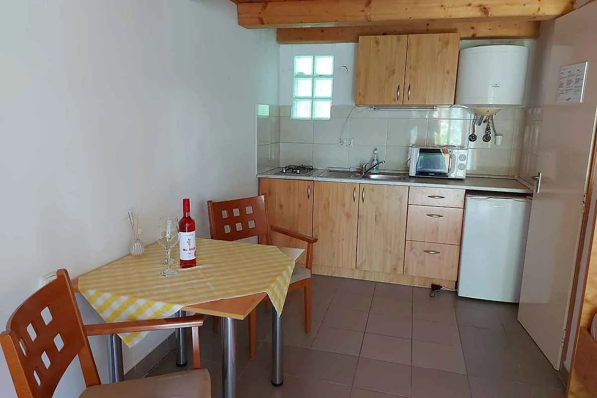 Lo studio si trova in una casa, costruito nel 1990, è stato rinnovato nel 2015 ed è arredato funzionale. La proprietà si trova in un insediamento di case vacanze. Anche a causa tranquilla e soleggiata posizione, il domicilio è popolare. Attrezzature in comune: prato per prendere il sole, terrazza, mobili da giardino e fattoria.