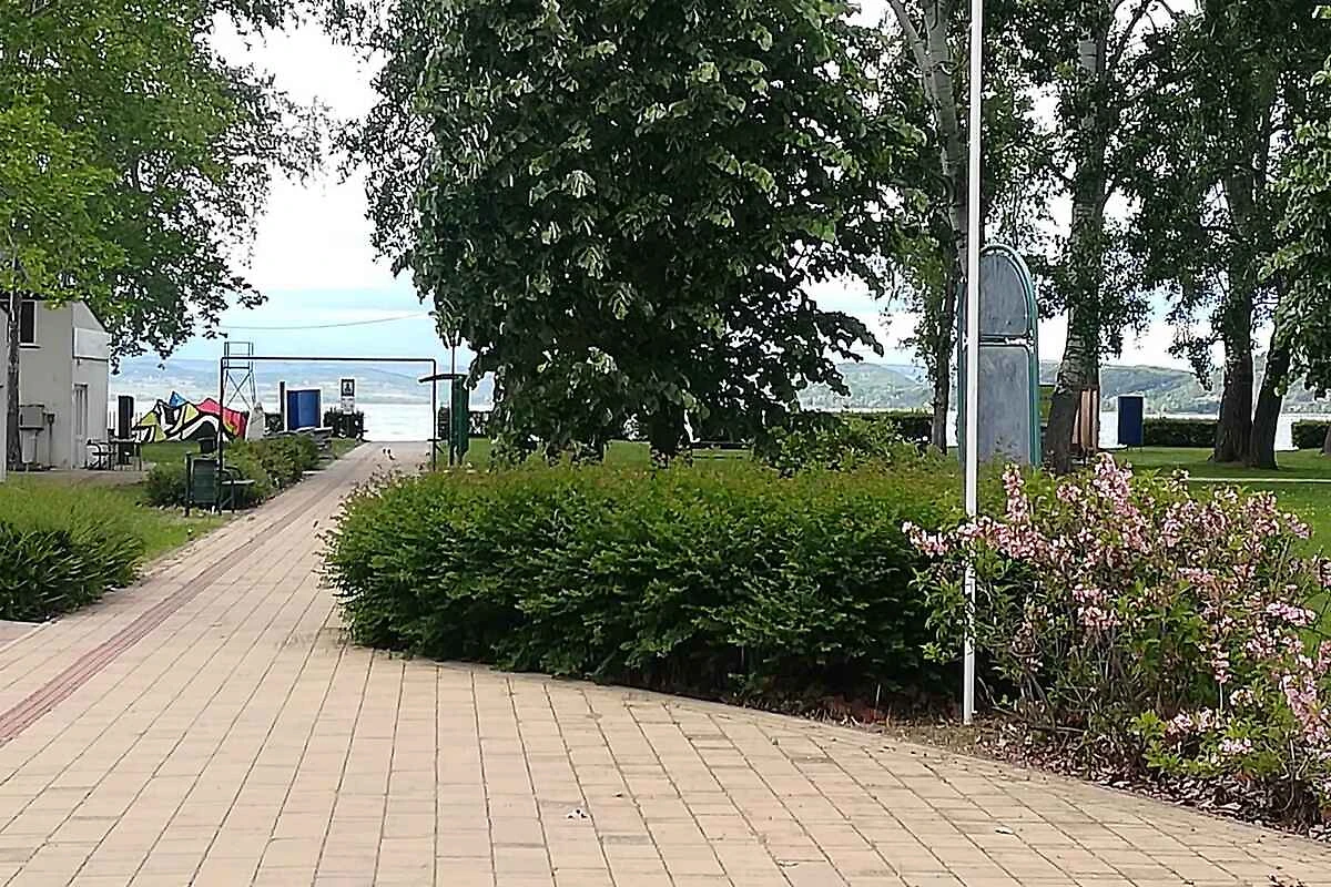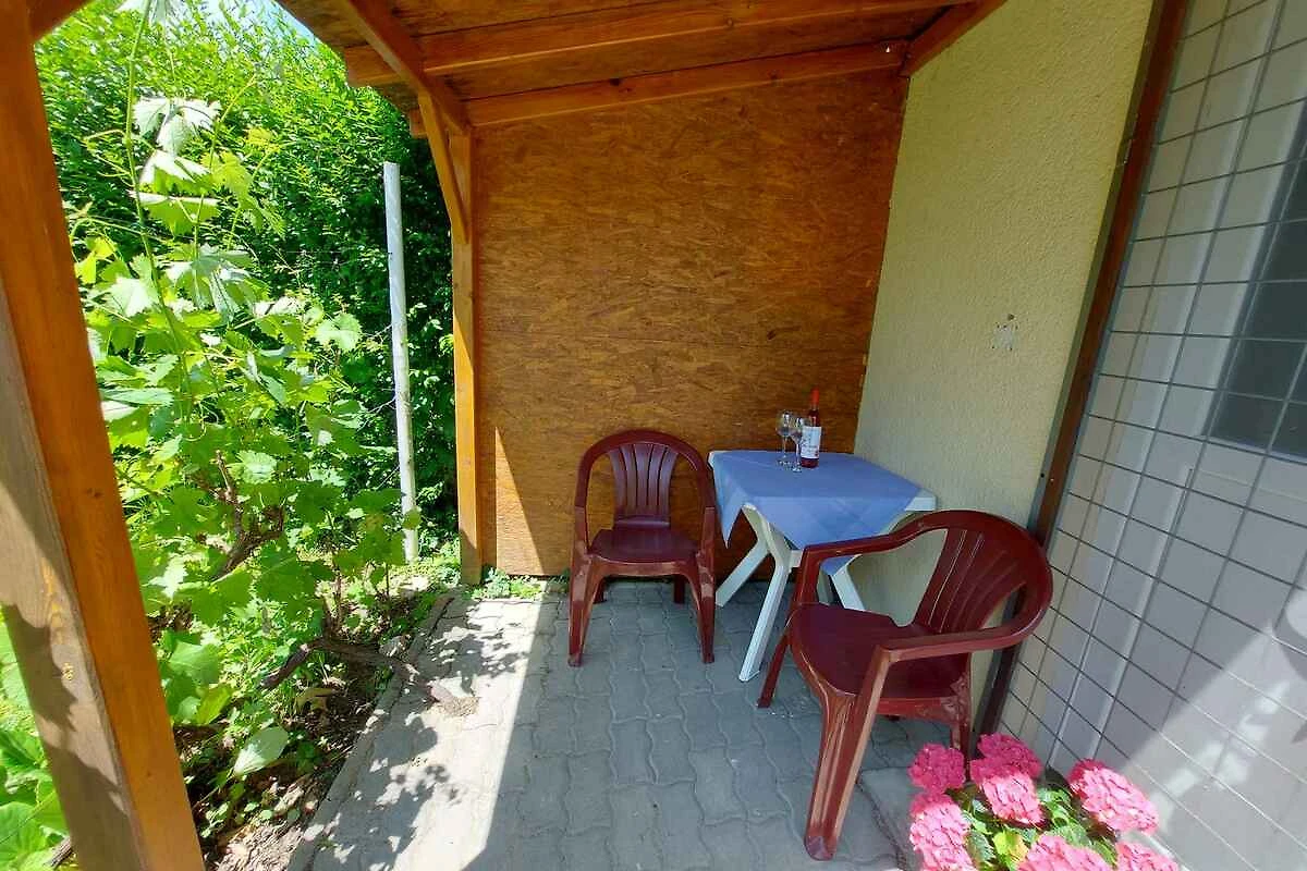 Balatonföldvár. Lo studio si trova in una trama del giardino chiuso con prato e arbusti, delimitata da una recinzione. Il padrone di casa vive solo temporaneamente in un altro edificio nella stessa proprietá. Parcheggio sulla proprietà.
