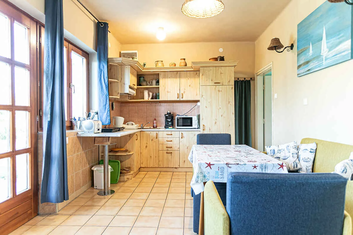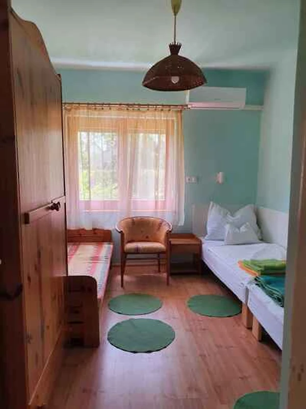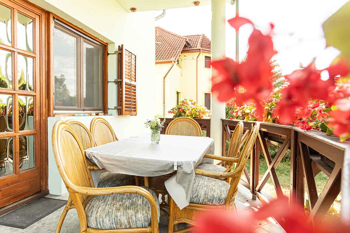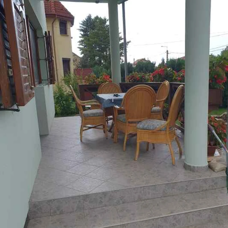 Balatonmáriafürdő. L' appartamento vacanze si trova in una trama del giardino chiuso, grande 1500 mq con prato, fiori, arbusti e alberi, delimitata da una recinzione. Il proprietario non abita nella casa o nella proprietá. L'appartamento BAL MAR 084 (5 persone) è anche in casa. La proprietà vacanze BAL MAR 088 (4 persone) si trova sulla proprietà. L'accesso avviene vicino a una strada secondaria (asfaltata). Parcheggio (per 6 auto) sulla proprietà.