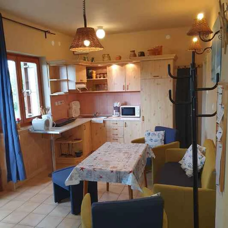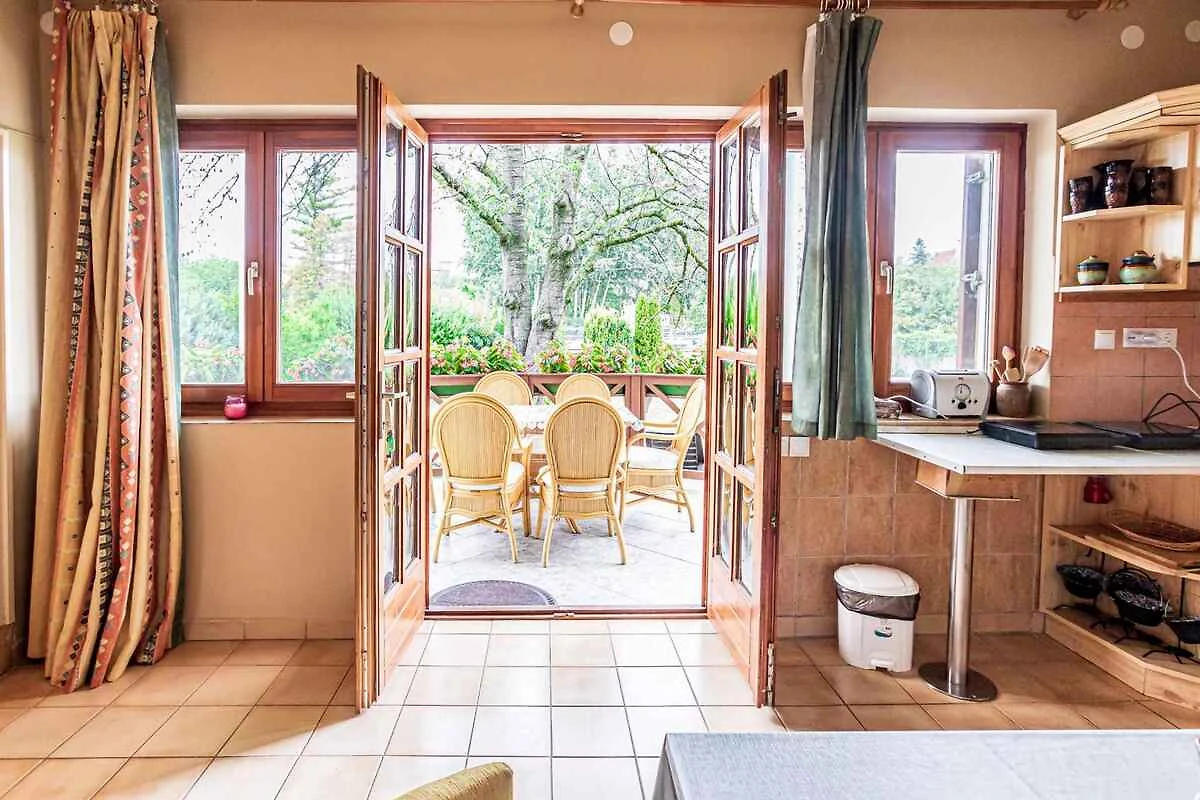 L' appartamento vacanze si trova in una casa unifamiliare, è stato rinnovato nel 2000 ed è arredato moderno. La proprietà si trova in una zona residenziale. Anche a causa della vista dalla struttura sul giardino e tranquilla e soleggiata posizione, il domicilio è popolare. Attrezzature in comune: prato per prendere il sole, lettino da sole, parco giochi per bambini, swing, sandbox, possibilità di grigliare, padiglione, mobili da giardino e caminetto. Si prega di presepe preordine.