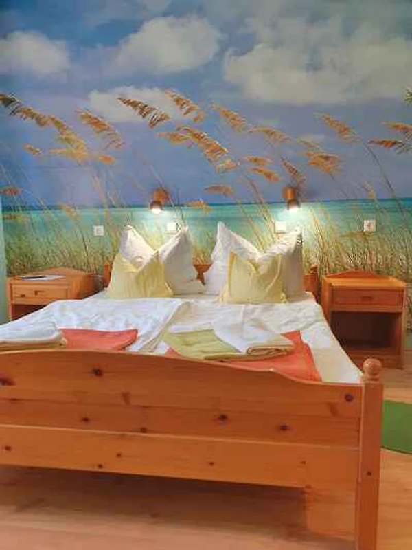 L'ingresso del vostro appartamento si trova im Erdgeschoss. Soggiorno con angolo di seduta, TV e accesso alla terrazza (10 mq, coperto, mobili da giardino, 1 tavolo, 5 sedie). Camera da letto con 1 letto matrimoniale e 1 letto singolo. Camera da letto con 2 letti singoli. Cucina americana con stufa a gas, fornello elettrico, forno, frigorifero (scomparto del ghiaccio), microonde, caffettiera, tostapane e bollitore elettrico. Bagno con doccia, 1 lavandino e finestra. WC separato con WC e finestra.