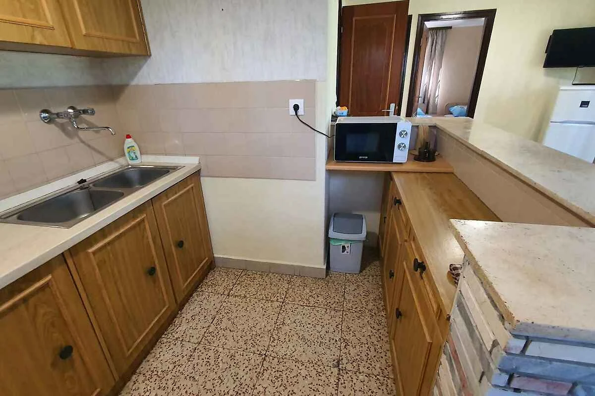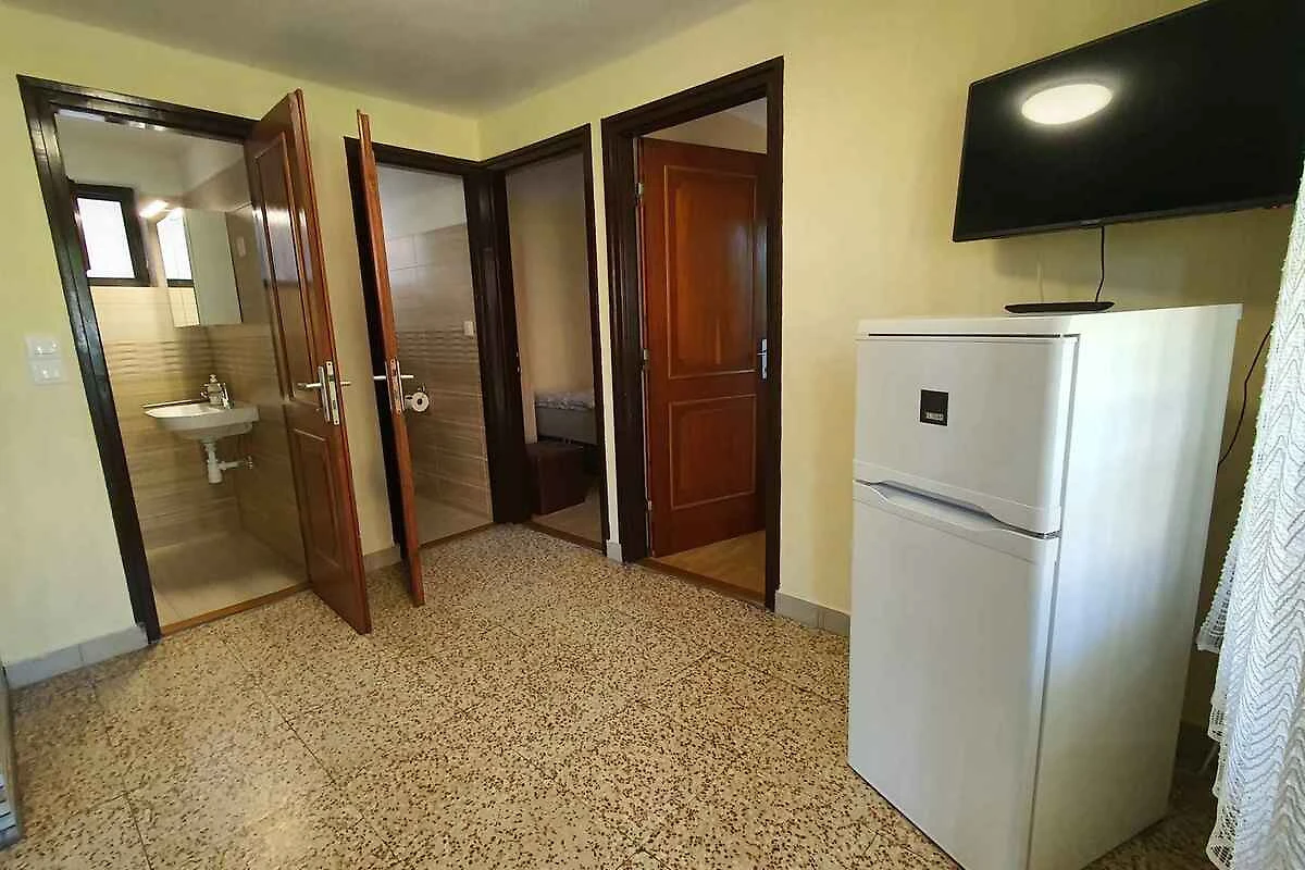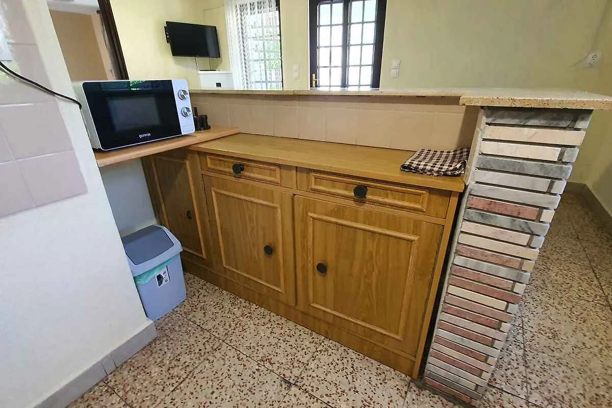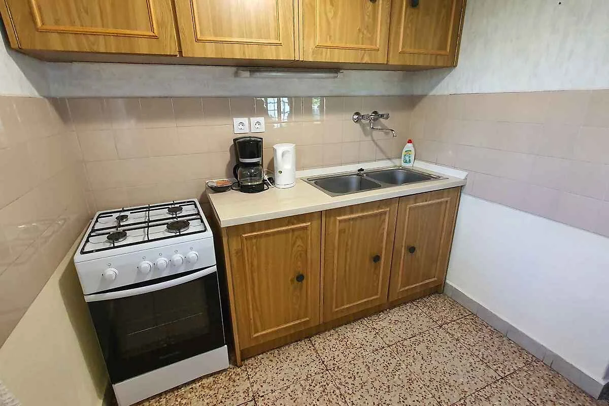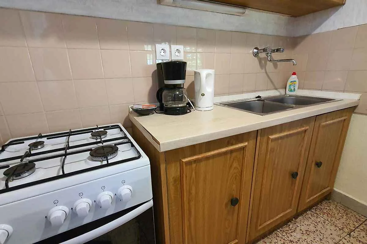 Piano terra: Soggiorno con TV. 2 camere da letto tutto a con 2 letti singoli. Cucina nel soggiorno con stufa a gas, frigorifero, microonde e caffettiera. Bagno (4 mq) con doccia, 1 lavandino e finestra. WC separato con 1 lavandino e WC.