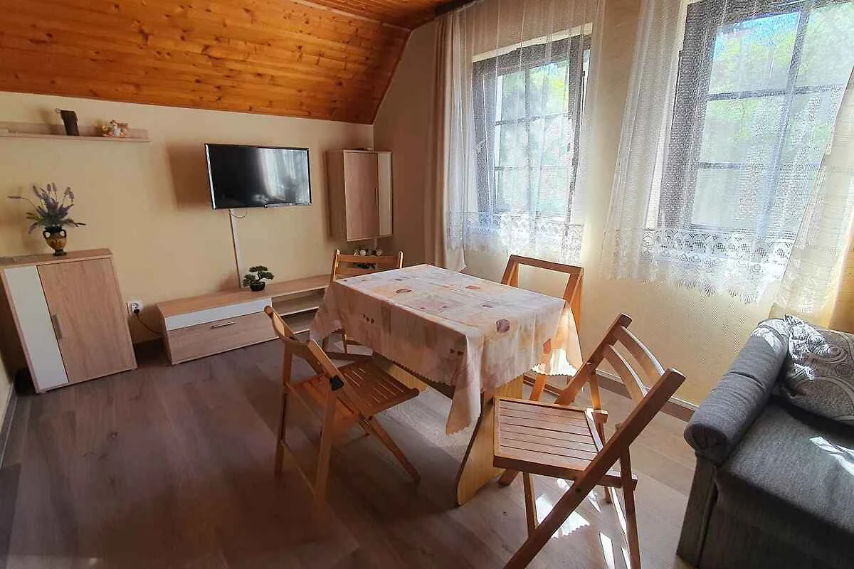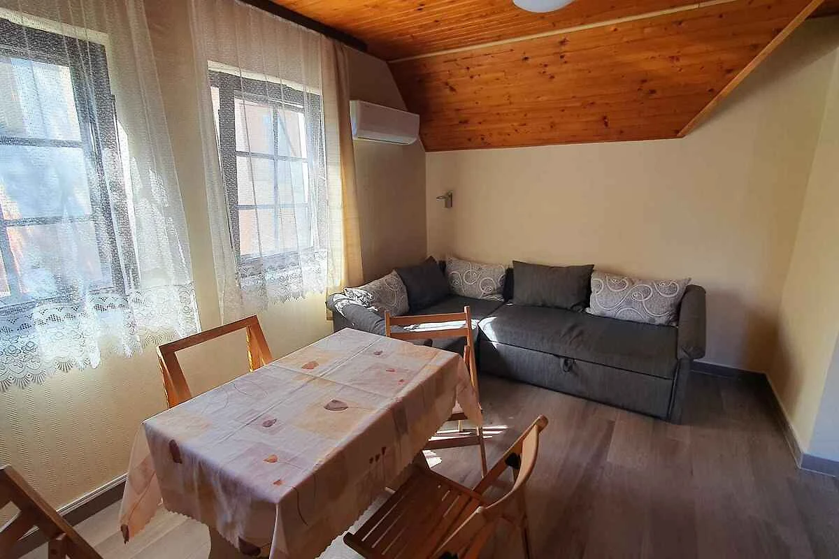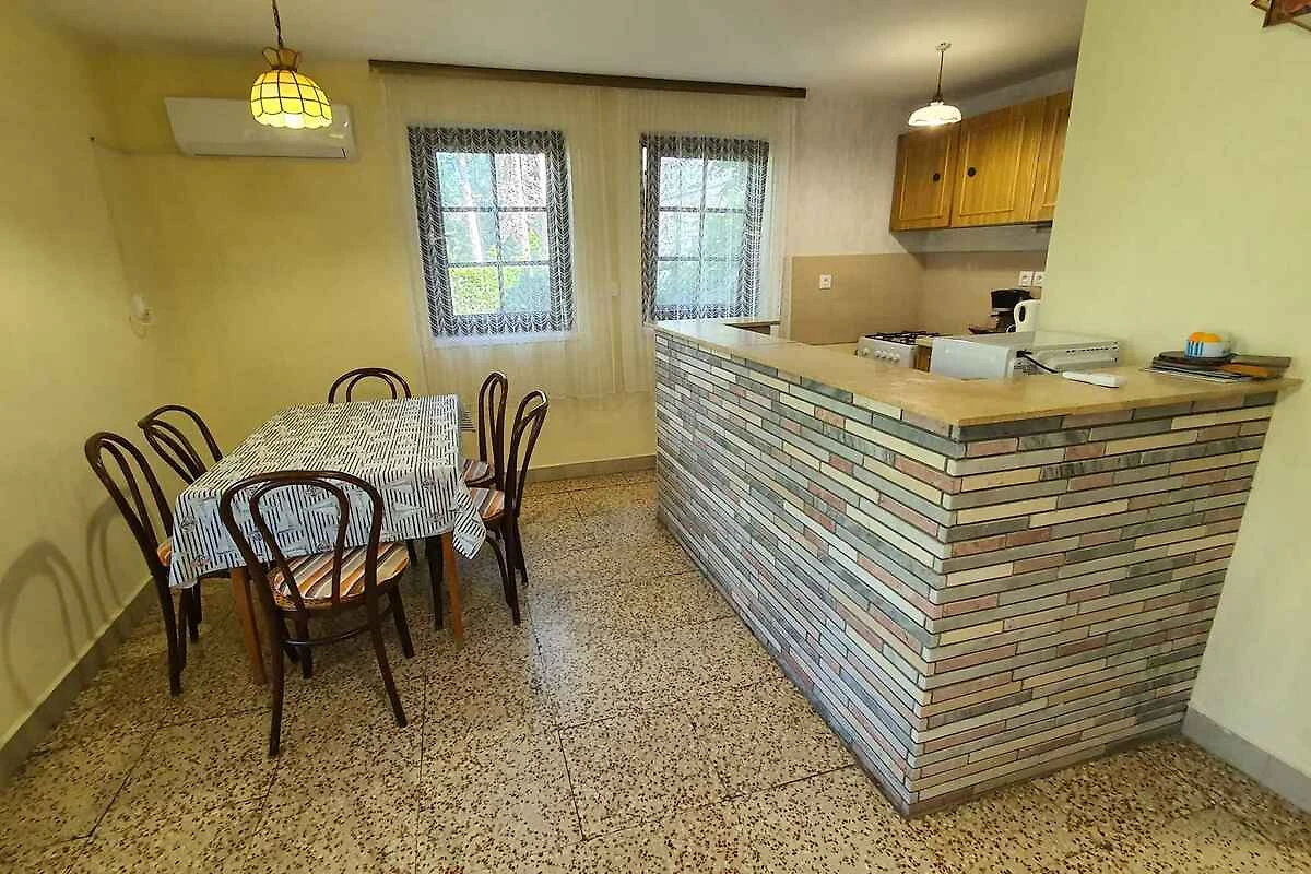 nel 2020 è arredata moderna e pratica. La proprietà si trova in un insediamento di case vacanze, in periferia. Anche a causa tranquilla e soleggiata posizione, il domicilio è popolare. Attrezzature in comune: prato per prendere il sole, ombrellone, lettino da sole, parco giochi per bambini, sandbox, doccia da giardino, possibilità di grigliare, terrazza, mobili da giardino, caminetto e fattoria.
