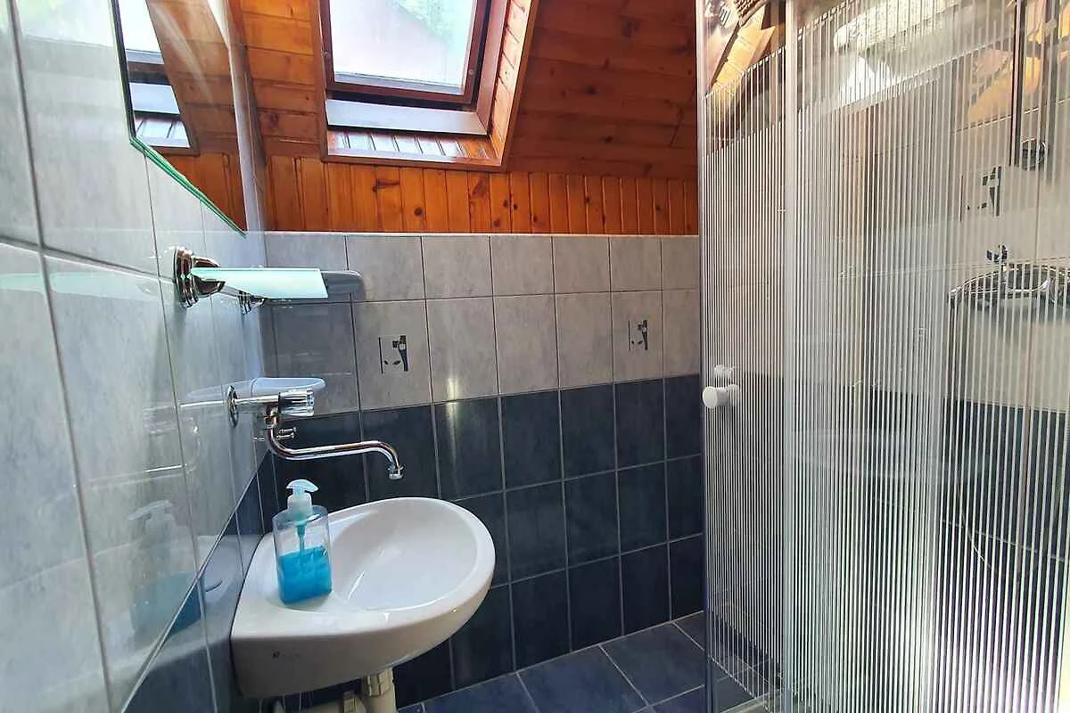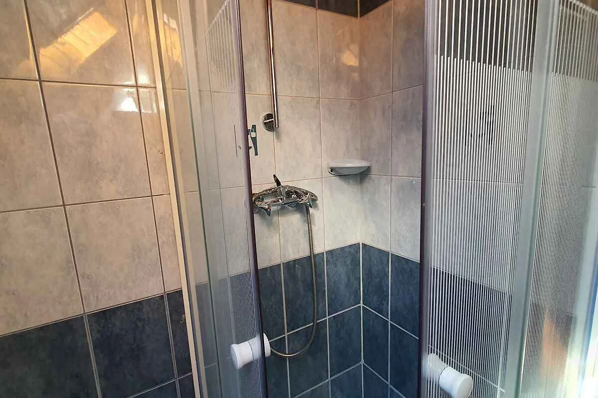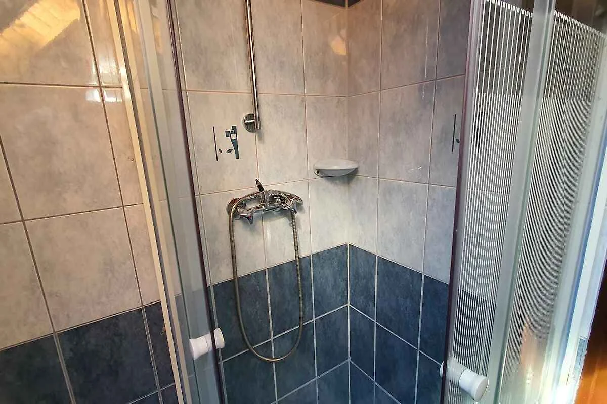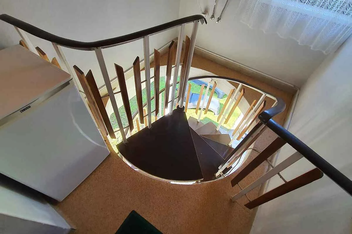 Piano superiore: Soggiorno/camera da letto con angolo di seduta e TV. Camera da letto con 2 letti singoli. Camera da letto con 1 letto matrimoniale. Cucina con stufa a gas, frigorifero, microonde e caffettiera. Bagno con doccia. WC separato con 1 lavandino e WC.