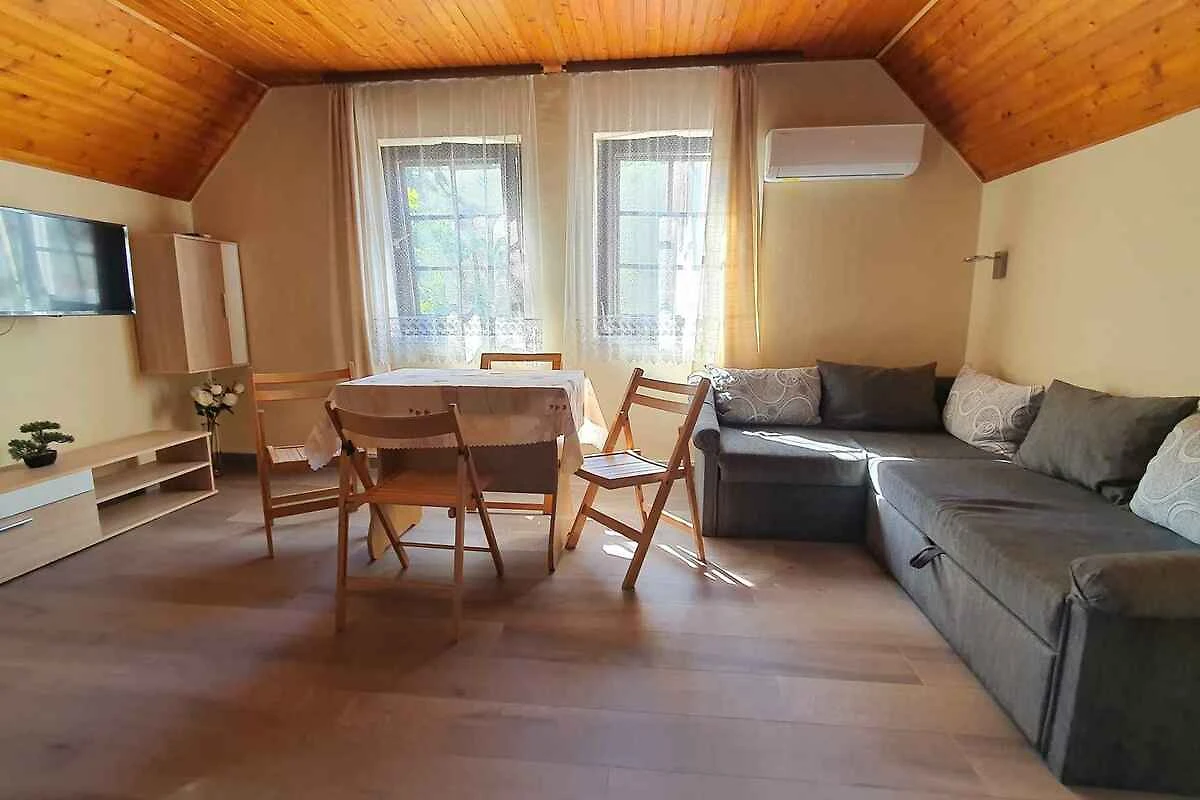Siofok. La casa vacanza si trova in una trama del giardino chiuso, grande 150 mq con prato, arbusti e alberi, delimitata da una recinzione. Il proprietario non abita nella casa o nella proprietá. La casa vacanza si trova nel terreno centrale. Adatto a famiglie più numerose. La casa dispone di un totale di 2 appartamenti. Anche BAL SIO 001 (8 persone) si trova qui La casa vacanze sul Lago Balaton si trova in un ambiente tranquillo e silenzioso (Freedom Beach (ca. 150 m), Galérius Adventure e bagni termali (300 m)) L'accesso avviene vicino a una strada secondaria (asfaltata). Parcheggio sulla proprietà.