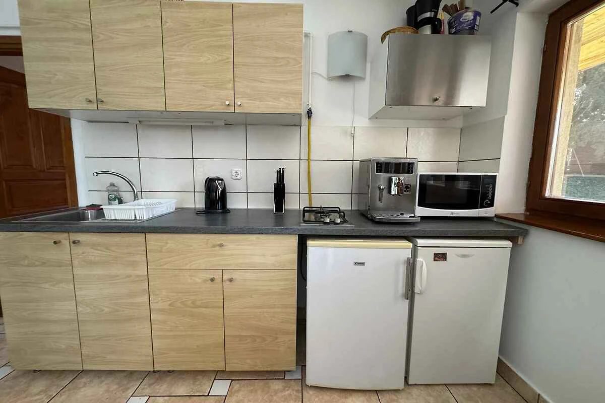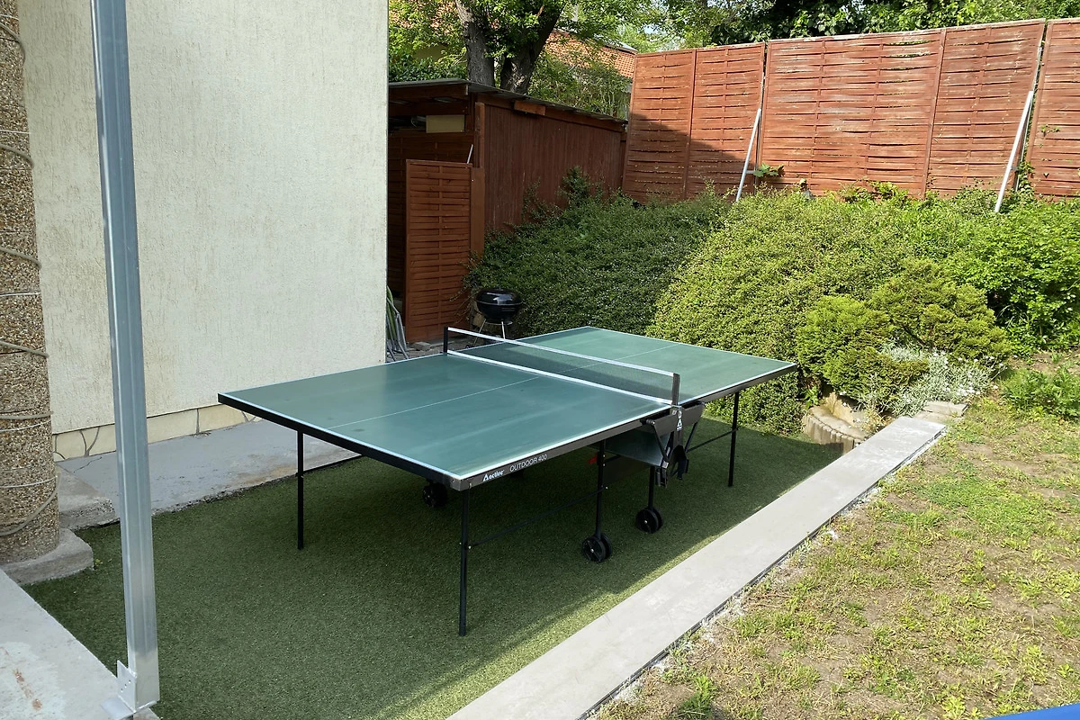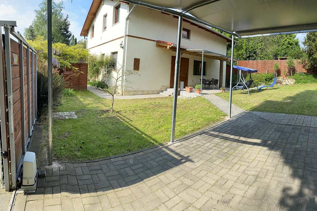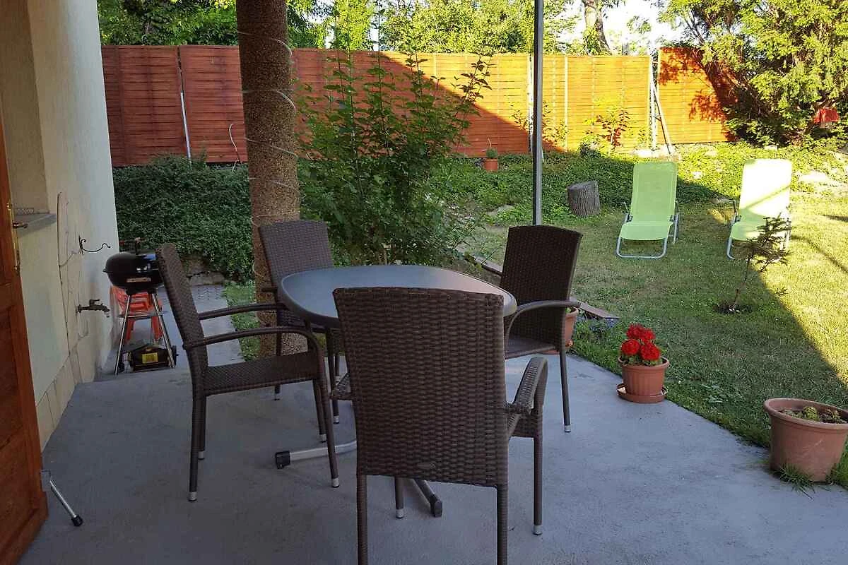 Siofok, frazione Szabadifürdő. La casa vacanza si trova in una trama del giardino chiuso, grande 260 mq con prato, fiori, arbusti e alberi, delimitata da una recinzione e una siepe. Il proprietario non abita nella casa o nella proprietá. Il padrone di casa ti dà alla macchina del caffè 1 kg di buon caffè. L'accesso avviene vicino a una strada secondaria (asfaltata). Parcheggio (per 2 auto) sulla proprietà.