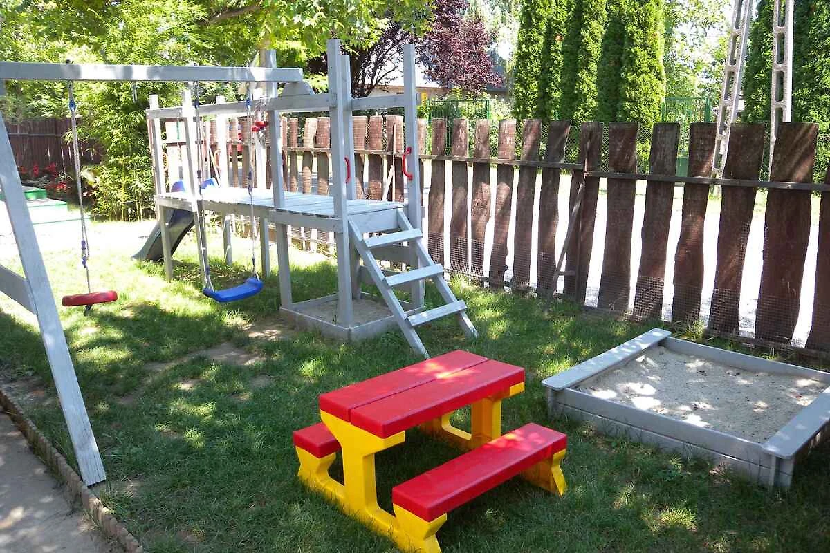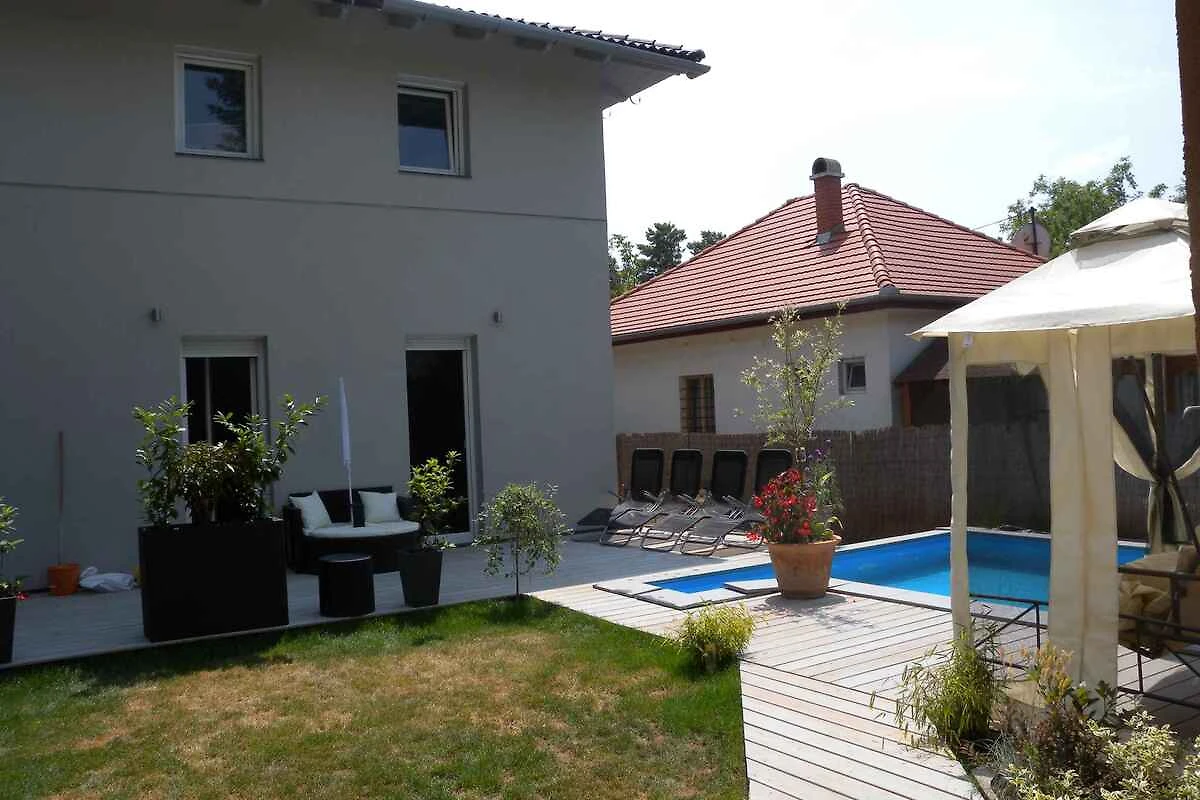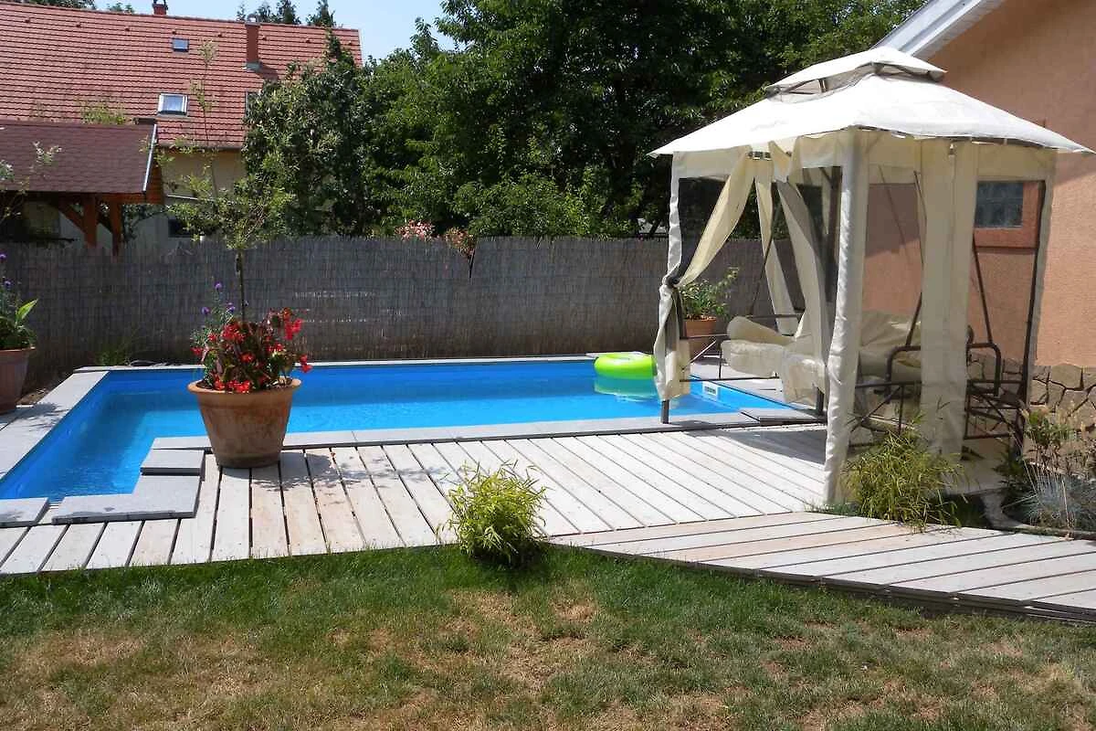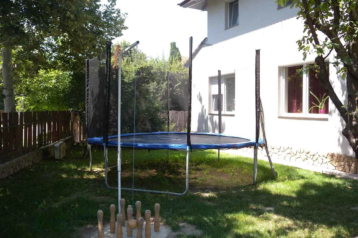 Siofok. L' appartamento vacanze si trova in una trama del giardino chiuso, grande 600 mq con prato, fiori e alberi, delimitata da una recinzione. Il proprietario non abita nella casa o nella proprietá. Nella casa ci sono ancora 3 appartamenti. L'accesso avviene vicino a una strada secondaria (asfaltata). Parcheggio (per 2 auto) sulla strada davanti alla casa.