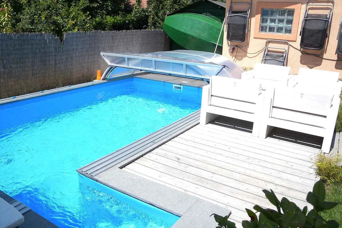 Piscina esterna (3,1 m x 5,3 m, profondità 1,2 m, ad uso comune). L'area della piscina è utilizzabile da metà giugno a fine settembre.