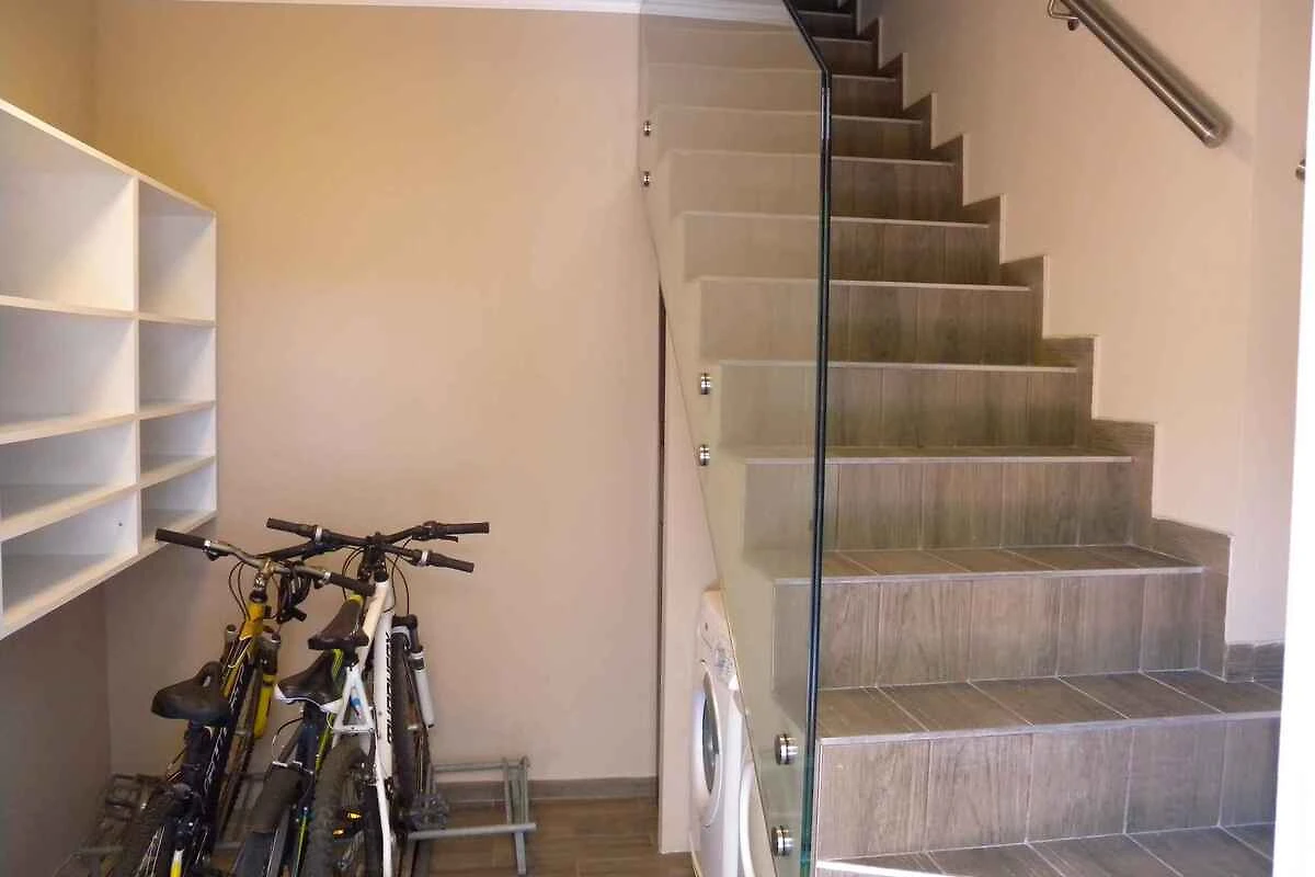 Piano superiore: Cucina soggiorno (10 mq) con 1 letto matrimoniale e Balcone accessibile tramite scala. Camera da letto (16 mq) con 1 letto matrimoniale. Bagno con doccia, 1 lavandino, WC, finestra e Lavatrice e asciugatrice nella scala.