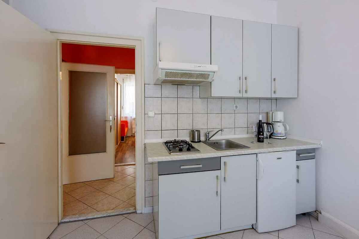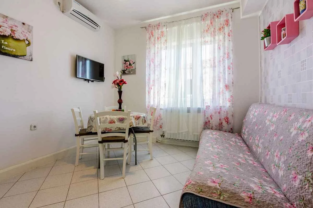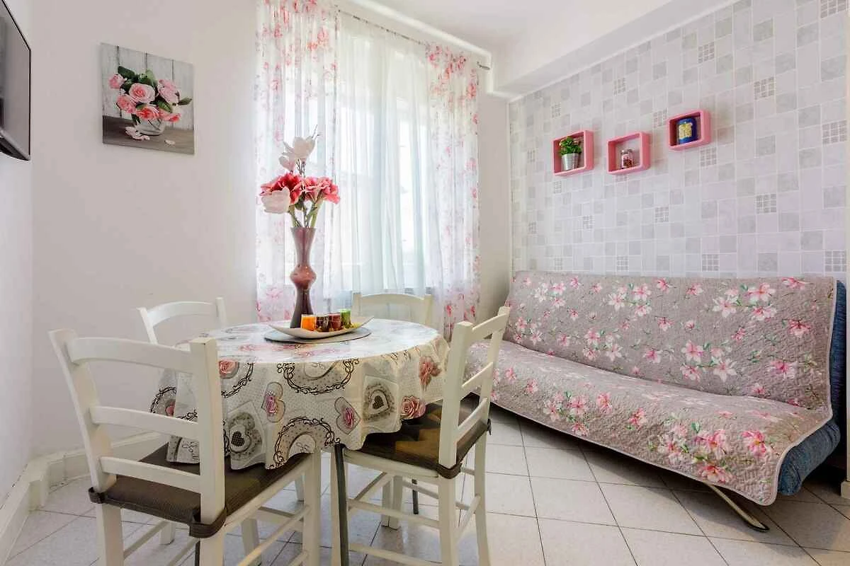 Crikvenica. L' appartamento vacanze si trova in una proprietá chiuso, delimitata da una recinzione. Il proprietario non abita nella casa o nella proprietá. L'accesso avviene attraverso una strada (asfaltata). Parcheggio (per 1 auto) sulla proprietà.