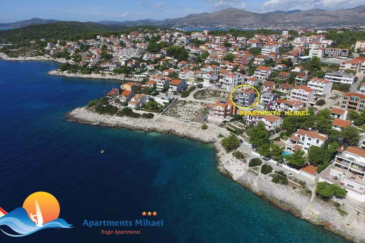 Acquisti 300 m, ristorante 300 m, centro locale 1000 m. stazione ferroviaria a Diviso 30 km. Okrug Gornji: dottore, farmacia, banca tutto a 1000 m. discoteca 1500 m. aeroporto a Resnik 10 km. Trogir 4,5 km. Aeroporto 10 km. Split 30 km di distanza. Sibenik 50 km. Parco Nazionale di Krka 70 km di distanza. Parco Nazionale di Kornati 100 km. Parco Nazionale dei Laghi di Plitvice 200 km. Dubrovnik 245 km. In estate: