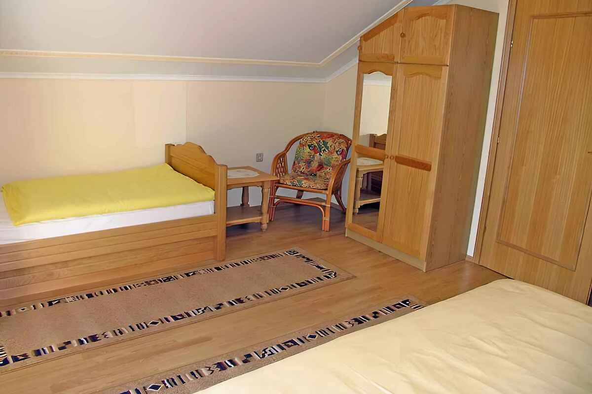 L'ingresso del vostro appartamento si trova nell'attico. Soggiorno con 1 letto aggiuntivo su divano/sofa, angolo di seduta, TV e accesso al balcone (6 mq, mobili da giardino). Camera da letto con 1 letto matrimoniale, 1 letto singolo e accesso al balcone (3 mq). Camera da letto con 1 letto matrimoniale e 1 letto singolo. Angolo cucina con zona pranzo, fornello elettrico (2 fornelli), cappa aspirante, frigorifero (scomparto del ghiaccio), microonde e caffettiera. Bagno con vasca da bagno con dispositivo doccia, 1 lavandino, WC, asciugacapelli e finestra.