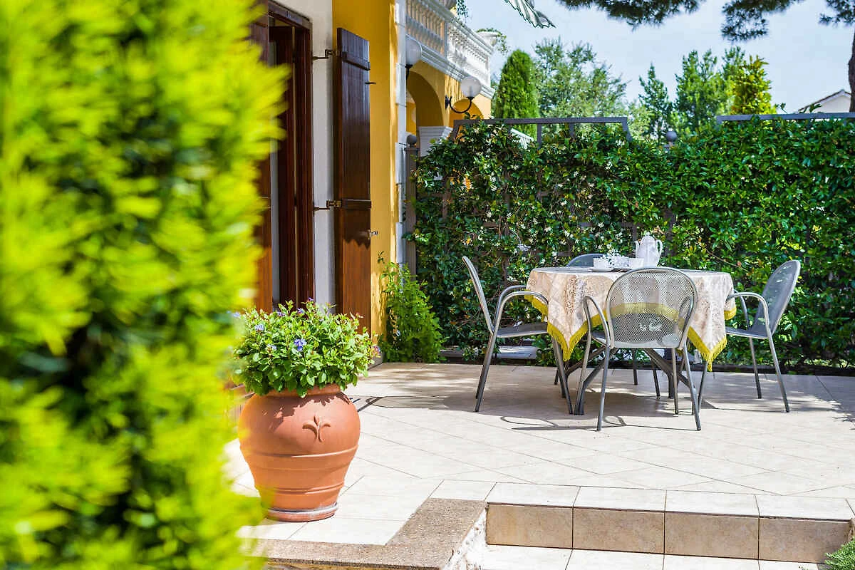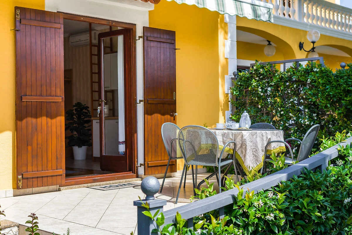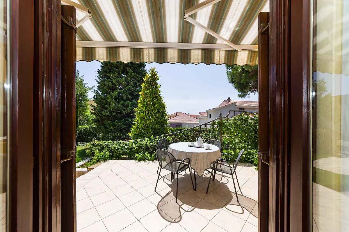 Zara. L' appartamento vacanze si trova in una trama del giardino chiuso con arbusti e alberi, delimitata da una recinzione e una siepe. Il padrone di casa vive stabilmente nella casa, ma usa un ingresso separato. L'accesso avviene vicino a una strada secondaria (asfaltata). Parcheggio sulla proprietà.
