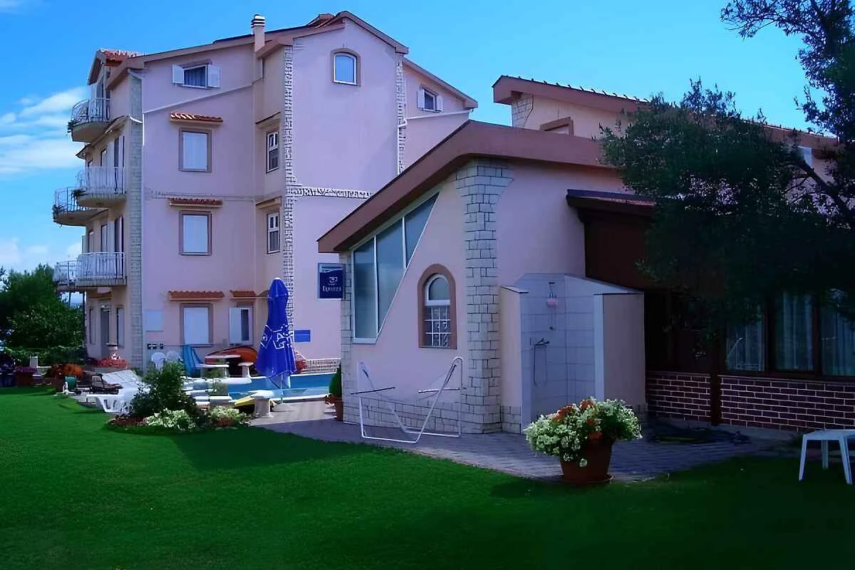 Tkon. L'appartamento per le vacanze si trova su un terreno recintato con giardino, prato e fiori. Il proprietario abita costantemente nella casa, ma utilizza un ingresso separato. Nella casa si trovano gli appartamenti per le vacanze DAL ZAD 216 (4 persone), 3 appartamenti per le vacanze dello stesso tipo DAL ZAD 218, DAL ZAD 776 e DAL ZAD 782 (ciascuno per 5 persone) e DAL ZAD 219 (8 persone). L'accesso avviene tramite una strada (asfaltata). Parcheggio sul terreno.