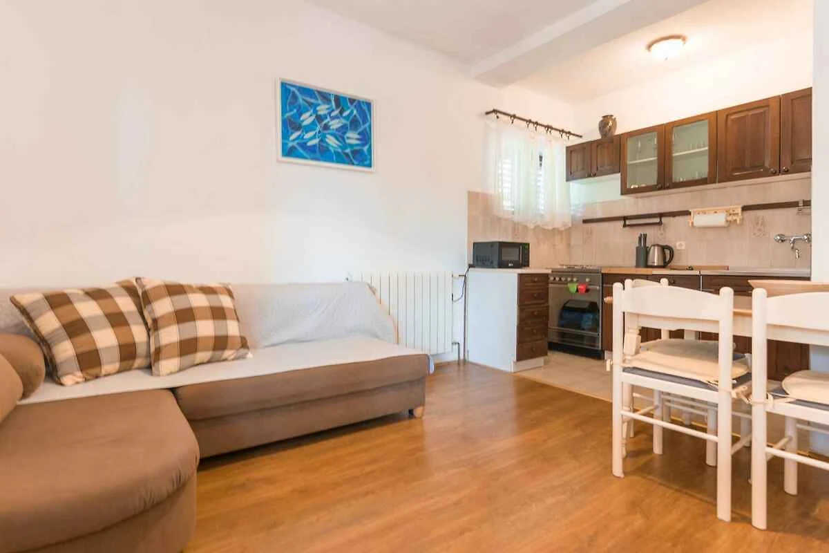 L' appartamento vacanze si trova in un appartamento casa ed è arredato in stile tradizionale. La proprietà si trova in un insediamento di case vacanze, in periferia. Attrezzature ad uso esclusivo: possibilità di grigliare e mobili da giardino. Balcone