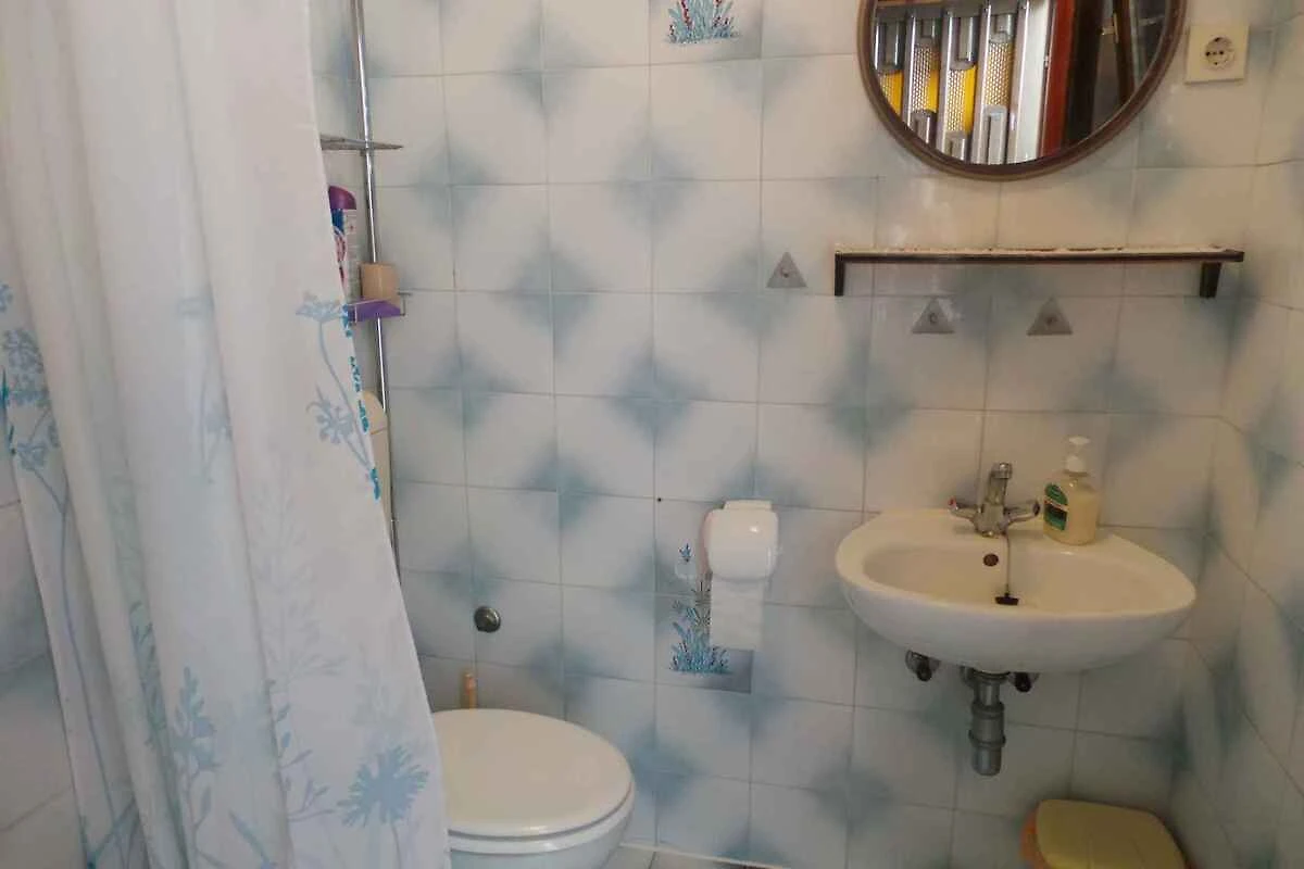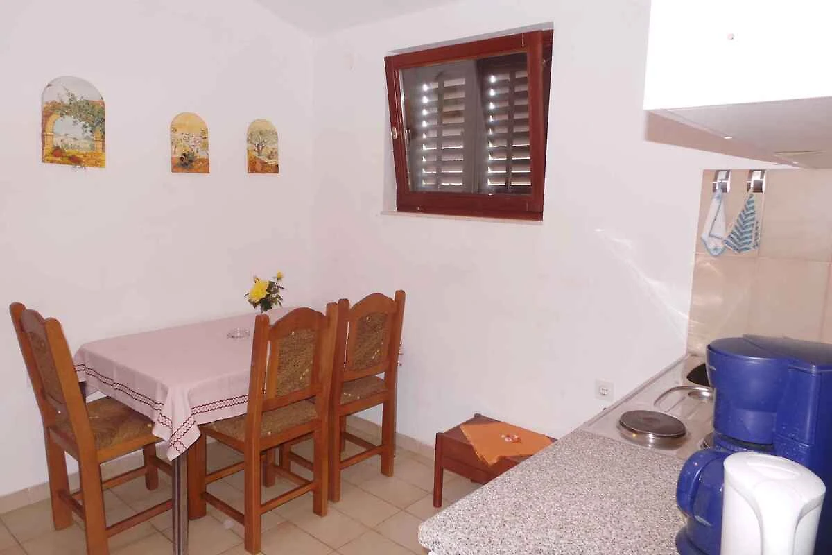 e conduce sopra una scala esterna direttamente nella cucina abitabile. Cucina soggiorno con 1 letto aggiuntivo su divano/sofa (adatto solo per bambini), TV e zona pranzo. Camera da letto con 1 letto matrimoniale e accesso alla terrazza (5 mq, mobili da giardino). Angolo cucina nella cucina soggiorno con fornello elettrico (2 fornelli), frigorifero (scomparto del ghiaccio), caffettiera e bollitore elettrico. Bagno con doccia, 1 lavandino, WC, finestra e Asciugacapelli disponibile su richiesta.