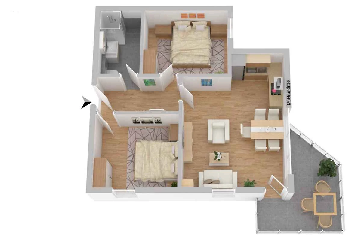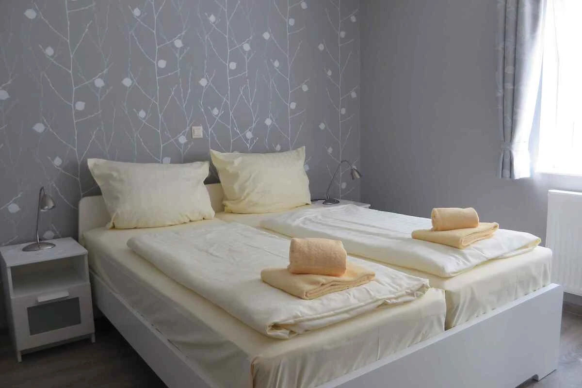 L'ingresso del vostro appartamento conduce direttamente nel corridoio. Soggiorno/camera da letto (23 mq) con 1 letto aggiuntivo su divano/sofa, TV, radio, sistema stereo, DVD, CD, zona pranzo (5 posti), accesso alla terrazza (mobili da giardino, 1 tavolo, 4 sedie) e Appartamento per non fumatori, gli animali non sono ammessi. 2 camere da letto tutto a (11 mq) con 1 letto matrimoniale. Angolo cucina in soggiorno/camera da letto con fornello elettrico (piano cottura ceran), forno, cappa aspirante, lavastoviglie, frigorifero (scomparto del ghiaccio), microonde, caffettiera, tostapane e bollitore elettrico. Corridoio (5 mq). Bagno (6 mq) con doccia, 1 lavandino, WC e asciugacapelli.
