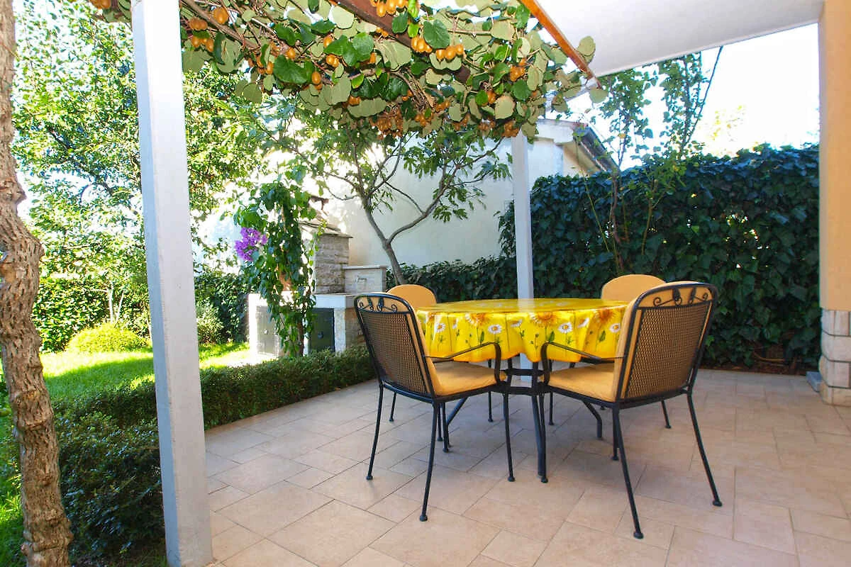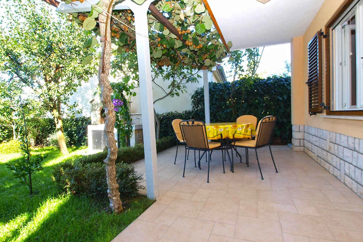 Medulin. L' appartamento vacanze si trova in una trama del giardino. Il padrone di casa vive stabilmente nella casa, ma usa un ingresso separato. Parcheggio (per 1 auto) sulla proprietà.
