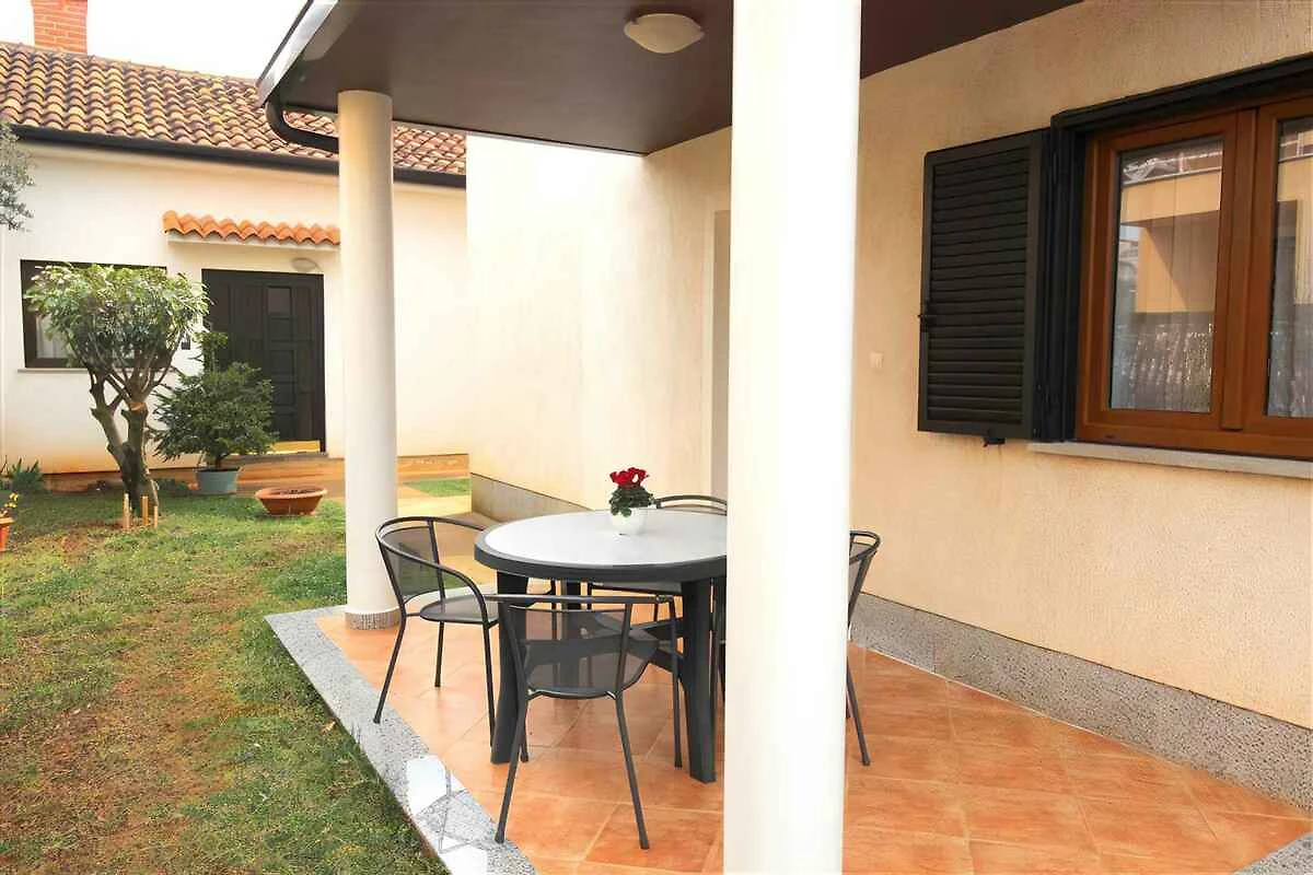 Novigrad, frazione Saini. L'appartamento per le vacanze si trova su un terreno recintato, delimitato da una recinzione. L'accesso avviene tramite una strada secondaria (asfaltata). Parcheggio sulla strada davanti alla casa.