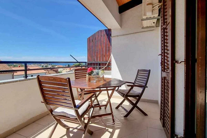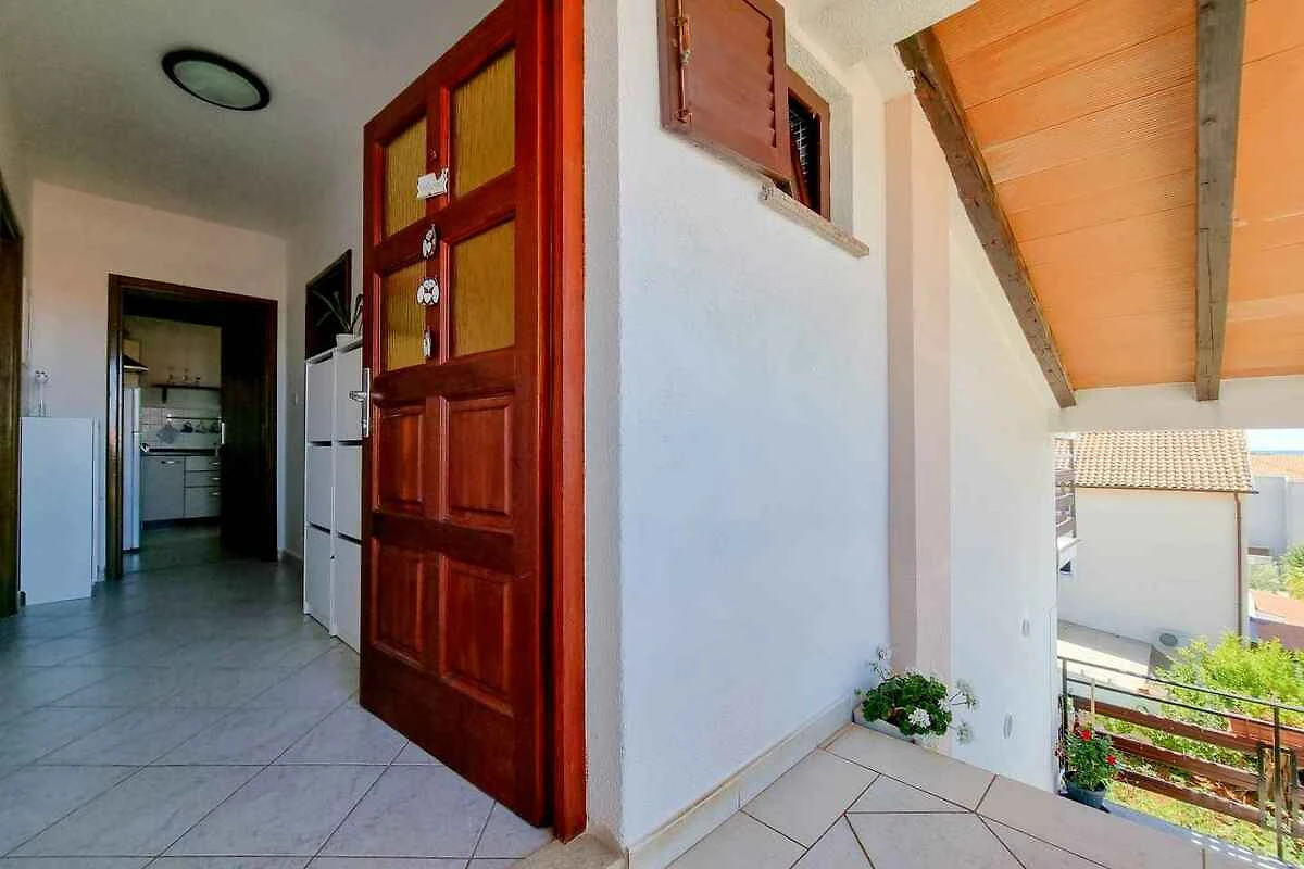 L’ingresso del vostro appartamento per le vacanze si trova al 2° piano e conduce tramite una scala esterna direttamente nel soggiorno. Cucina abitabile (stanza di passaggio) con angolo pranzo (2 posti) e accesso al balcone (coperto, mobili da giardino). Camera da letto con 1 letto matrimoniale. Cucina nella cucina abitabile con fornello a gas, piano cottura elettrico (4 piastre), frigorifero e macchina da caffè. Bagno con doccia, 1 lavabo e WC.