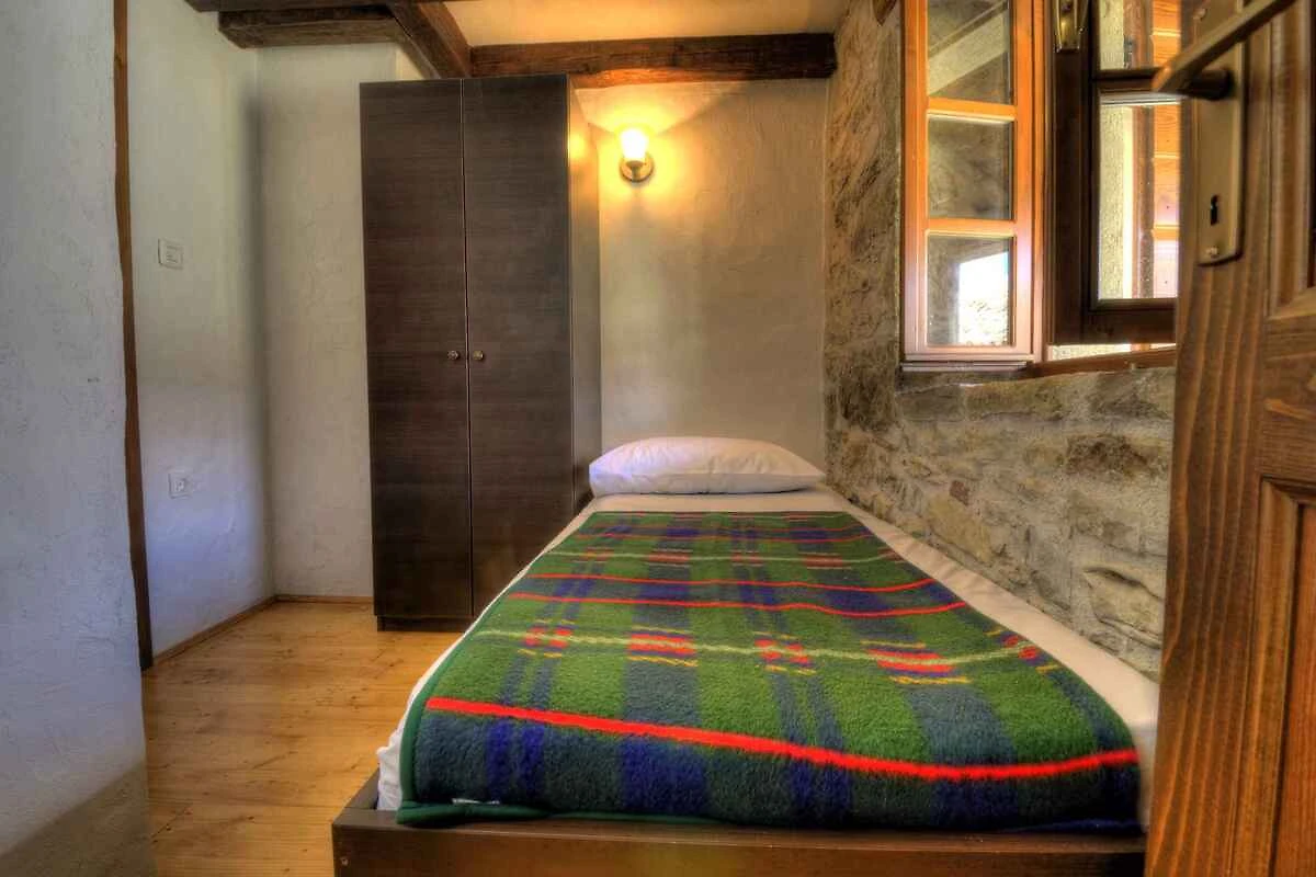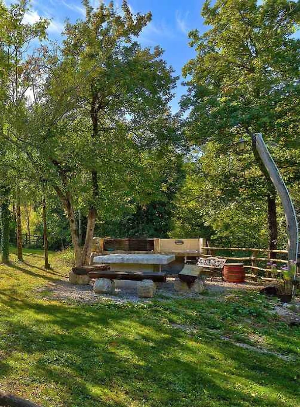 Buzet, frazione Kotli. La casa vacanza si trova in una proprietà dell'acqua e trama della foresta aperta, chiuso, grande 5000 mq con fiori e alberi, delimitata da una recinzione e una siepe. Il padrone di casa vive in un altro edificio nella stessa proprietá. L'intera proprietà appartiene ad un antico villaggio istriano con un totale di 8 case vacanza in pietra. La struttura è adatta a famiglie o gruppi più numerosi. Gli oggetti IST PAZ 068 (5 persone), IST PAZ 069 (4 persone), IST PAZ 070 (4 persone), IST PAZ 071 (4 persone), IST PAZ 072 (5 persone), IST PAZ 073 (2 persone), IST PAZ 074 (2 persone) e IST PAZ 075 (4 persone) si trovano nella stessa proprietà È un luogo classificato sotto la tutela del patrimonio rurale e per questo motivo non è interamente asfaltato. Il fiume Mirna scorre attraverso il villaggio. Le loro piccole cascate approfondiscono le pietre e formano buchi a forma di calderone nella roccia, da cui il nome del villaggio “Kotli” (calderone). L'accesso avviene vicino a una strada secondaria (asfaltata, pietrisco o ghiaia). Parcheggio sulla proprietà.