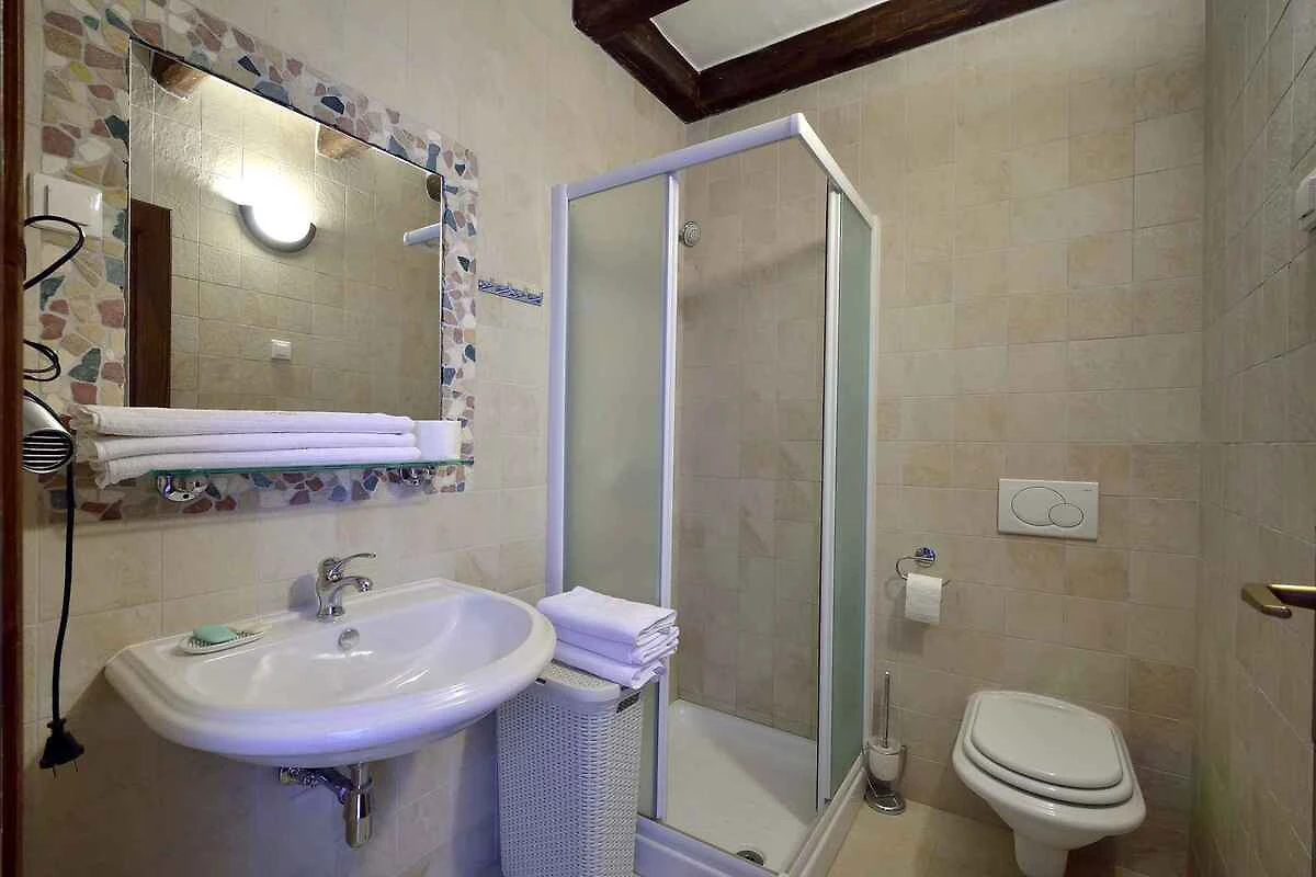 1° piano: Camera da letto con 1 letto matrimoniale. Camera da letto con 1 letto singolo. Bagno con doccia, 1 lavandino, WC, asciugacapelli e finestra.
