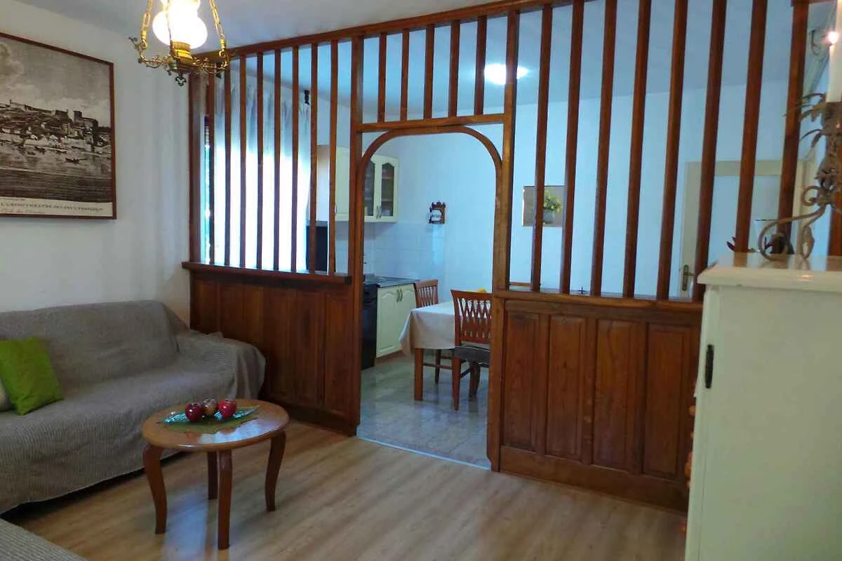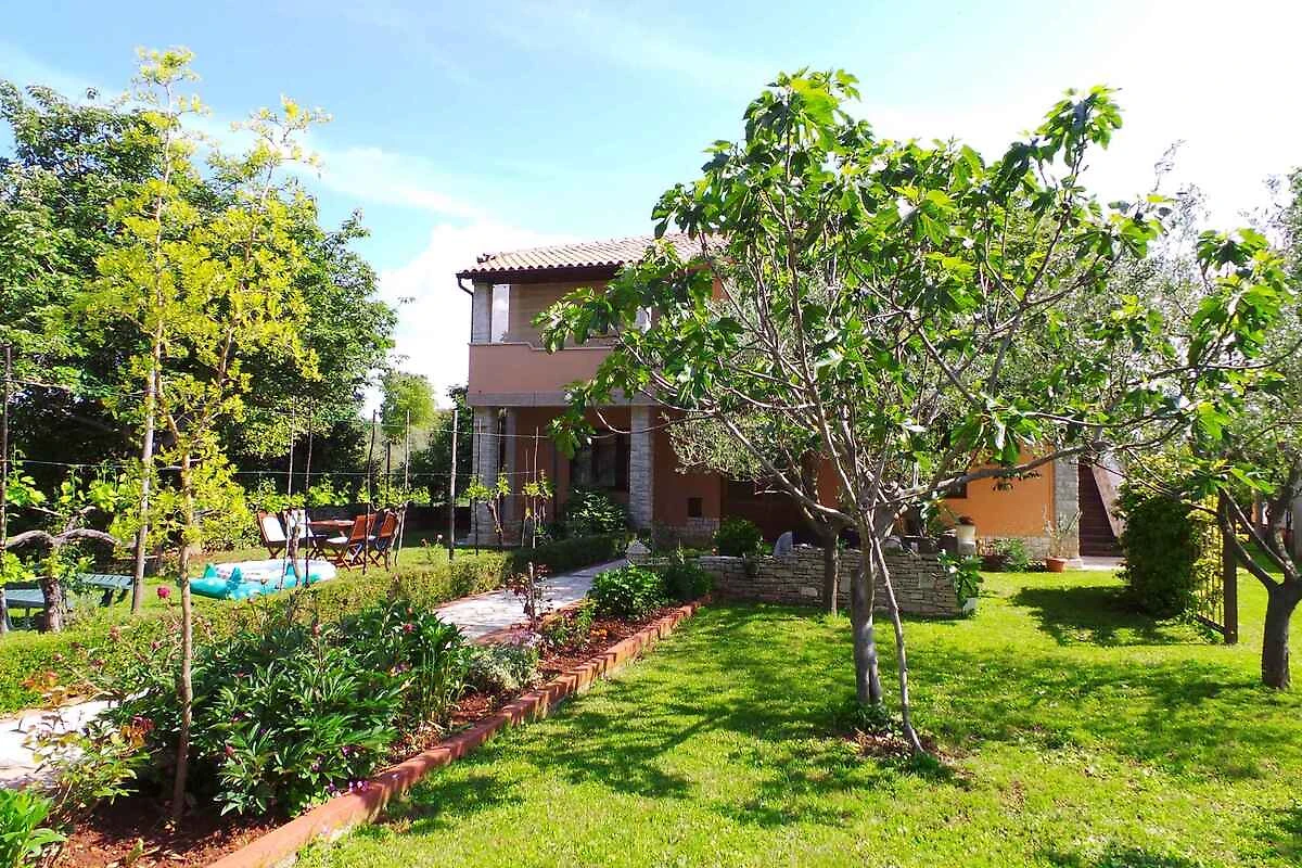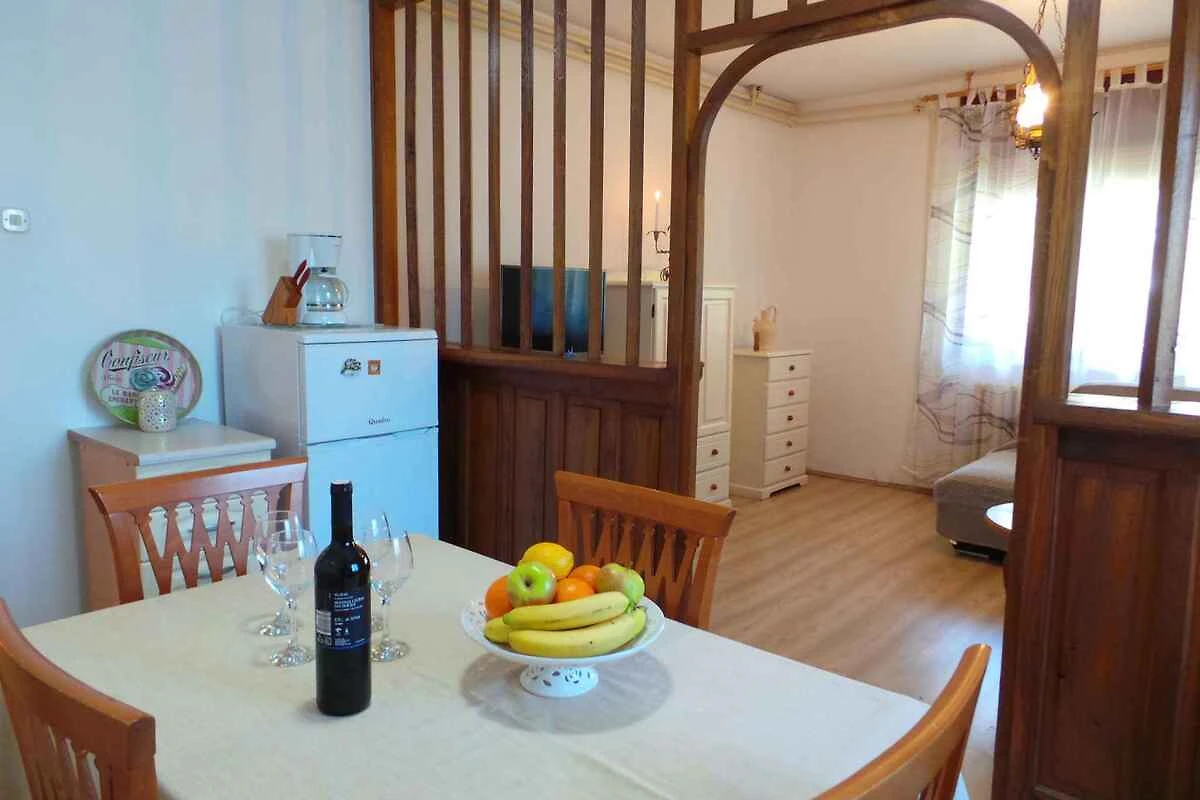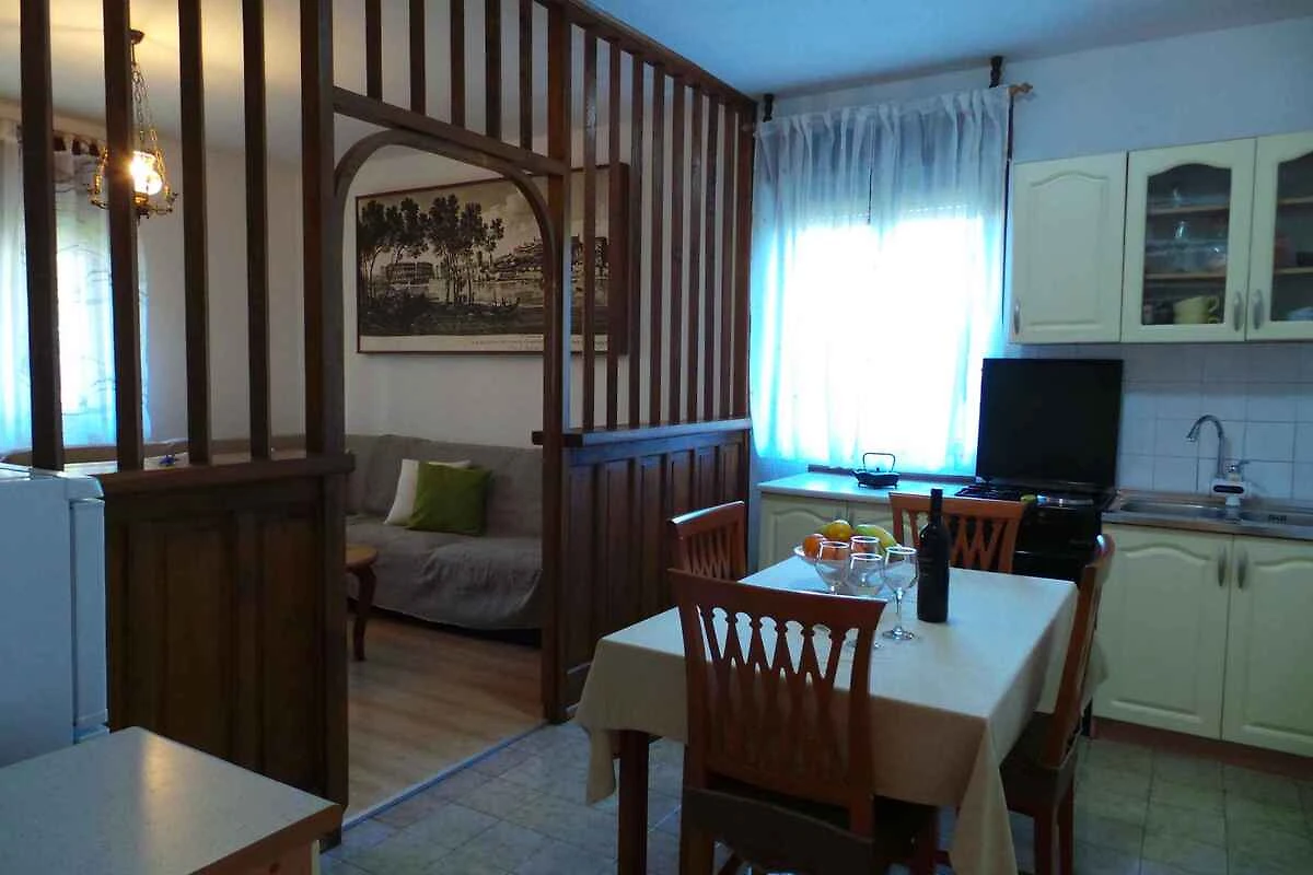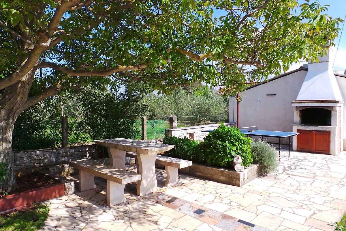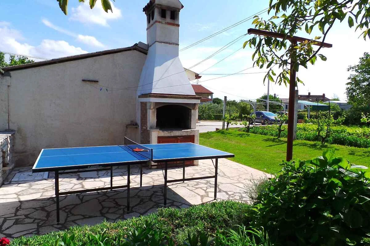 Muntić. L' appartamento vacanze si trova in una trama del giardino chiuso, grande 1500 mq con prato, fiori, arbusti e alberi, delimitata da una recinzione. Il padrone di casa vive stabilmente nella casa, ma usa un ingresso separato. L'accesso avviene vicino a una strada secondaria. Parcheggio (per 3 auto) sulla proprietà.