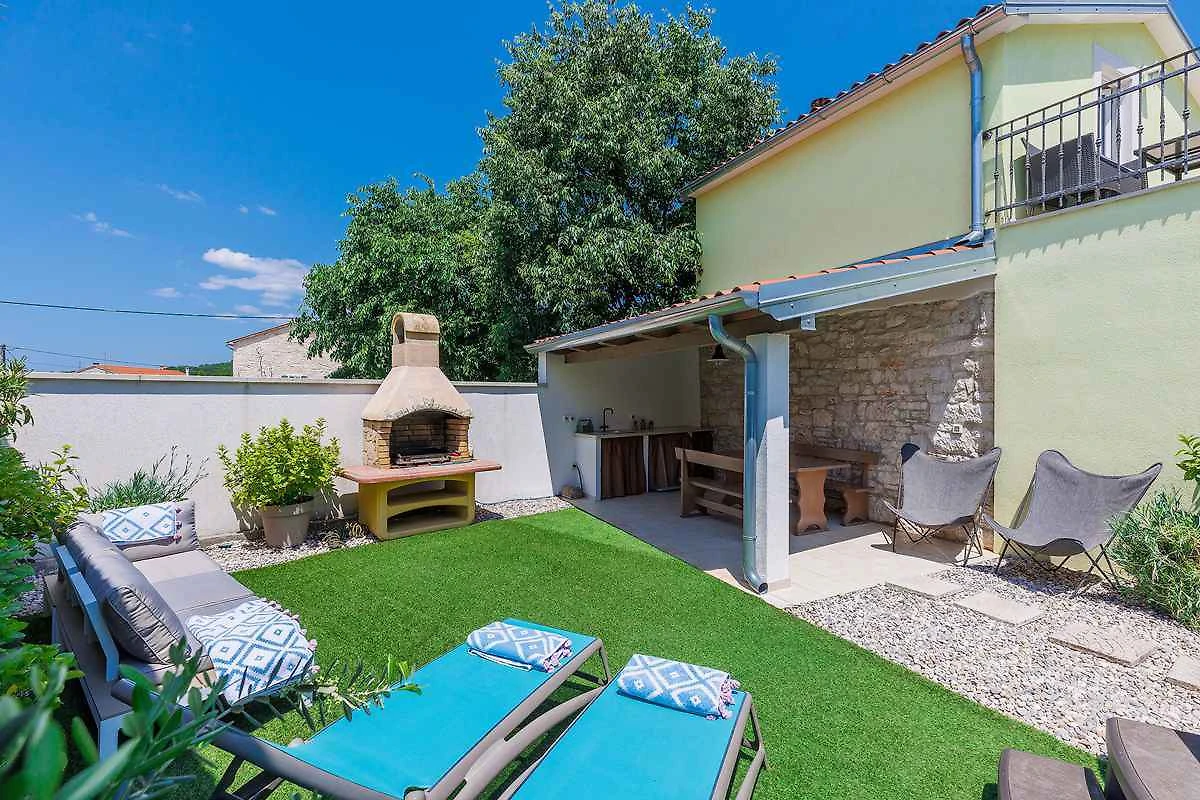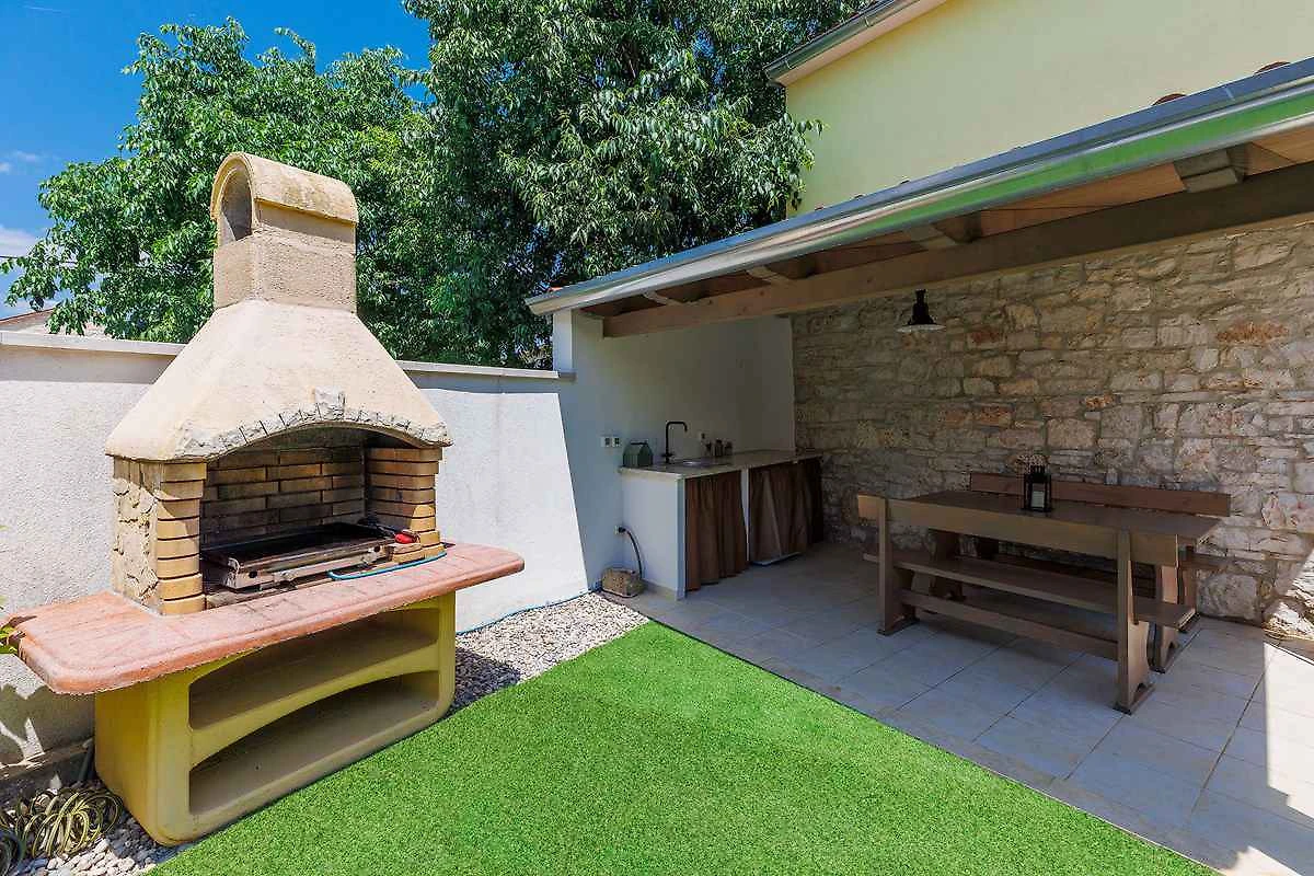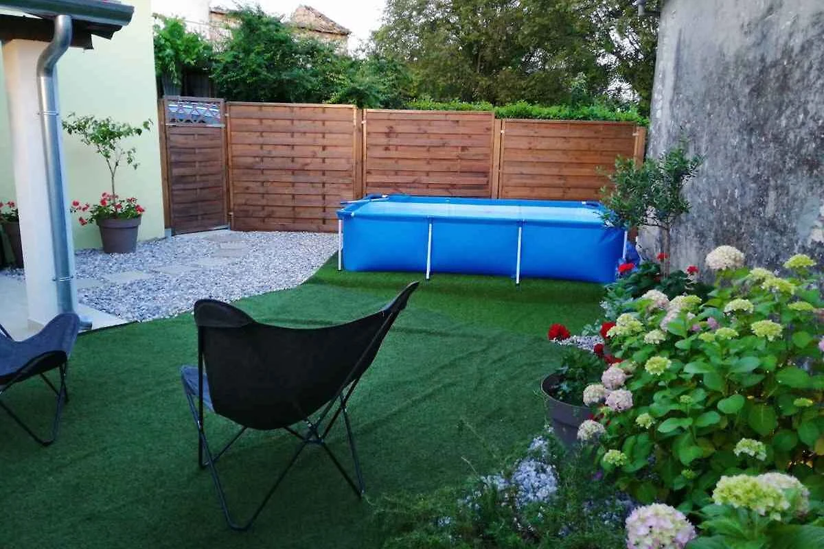 Rovigno, frazione Bubani. La casa vacanza si trova in una trama del giardino chiuso con arbusti. Il padrone di casa vive stabilmente nella casa, ma usa un ingresso separato. L'accesso avviene vicino a una strada secondaria. Parcheggio (per 1 auto).