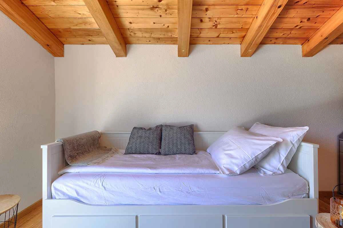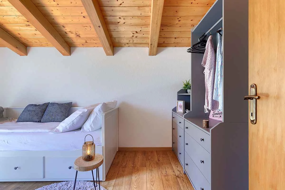 L'ingresso della vostra casa vacanze si trova im Erdgeschoss. Angolo cucina nel soggiorno con zona pranzo, stufa a gas, fornello elettrico, forno, frigorifero (25 l, scomparto del ghiaccio), microonde, caffettiera e bollitore elettrico. Soggiorno con 2 letti aggiuntivi su divano/sofa, zona pranzo e accesso alla terrazza (7 mq, mobili da giardino, ombrellone). Camera da letto con 2 letti singoli e incluso 1 letto supplementare. Camera da letto (camera di passaggio) con 1 letto matrimoniale. Bagno con doccia, 1 lavandino, WC e asciugacapelli.
