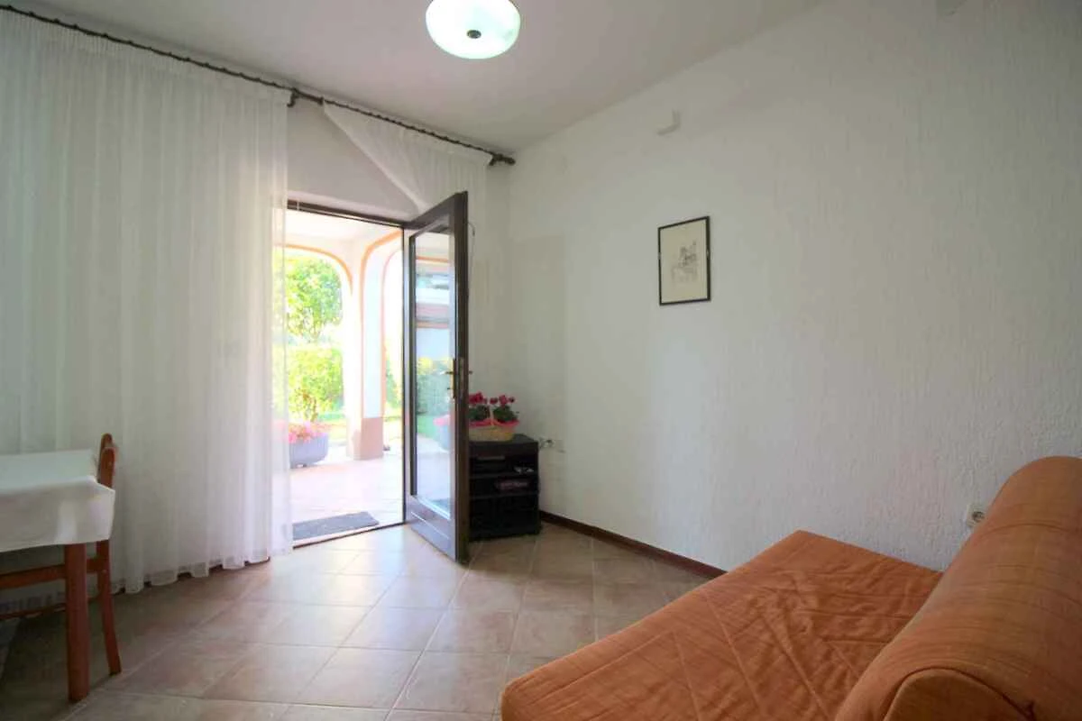 Funtana, frazione Funtana. L' appartamento vacanze si trova in una trama del giardino chiuso, grande 400 mq, delimitata da una recinzione. Il padrone di casa vive stabilmente nella casa, ma usa un ingresso separato. Gli appartamenti per le vacanze ISTVRS136 e ISTPOR137 si trovano nella stessa casa. L'accesso avviene vicino a una strada secondaria (asfaltata). Parcheggio (per 1 auto) sulla strada davanti alla casa.