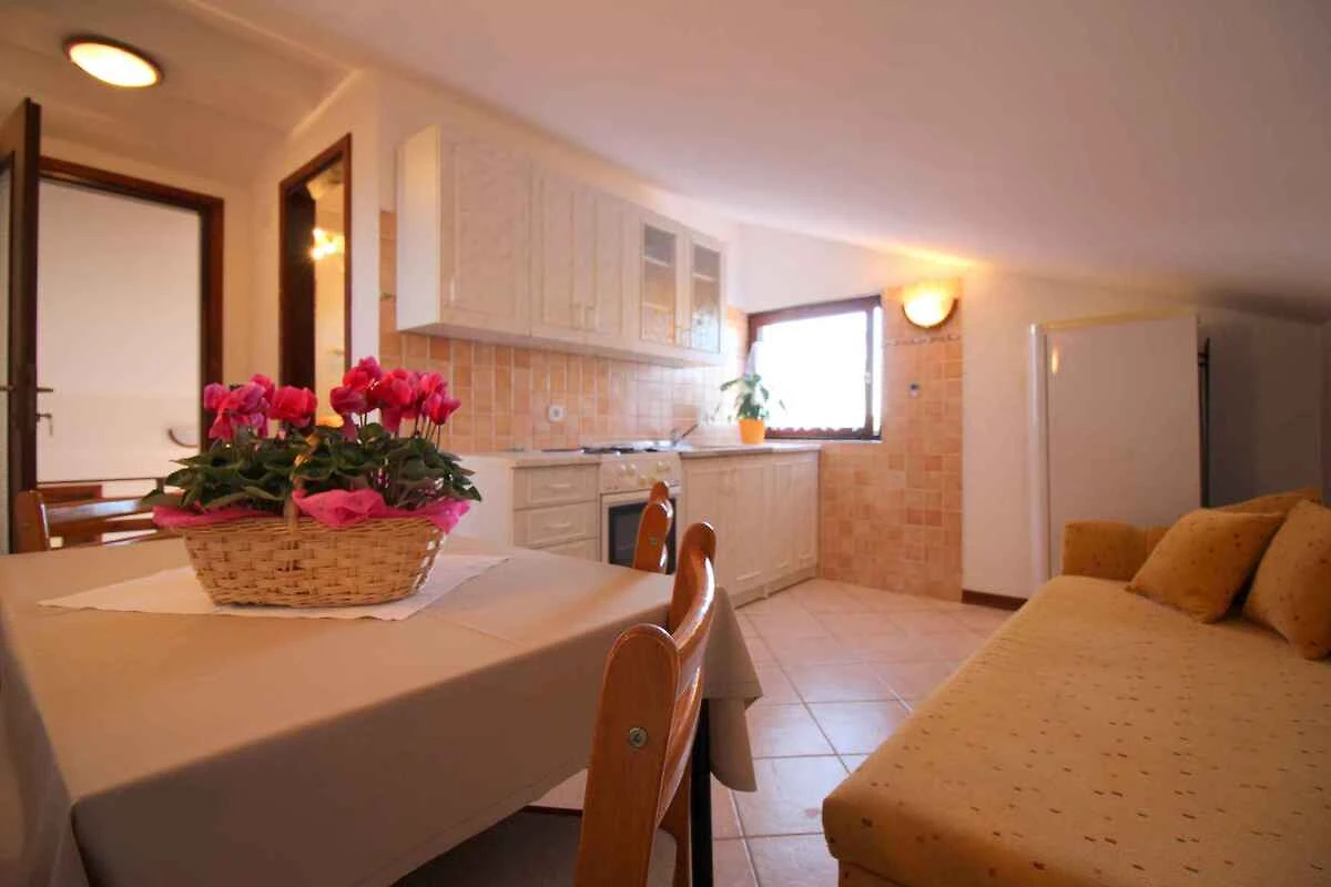 Funtana. L' appartamento vacanze si trova in una trama del giardino chiuso, grande 400 mq, delimitata da una recinzione. Il padrone di casa vive stabilmente nella casa, ma usa un ingresso separato. L'appartamento vacanza IST VRS 136 (4 persone) si trova nella stessa casa L'accesso avviene vicino a una strada secondaria (asfaltata). Parcheggio (per 1 auto) sulla strada davanti alla casa.