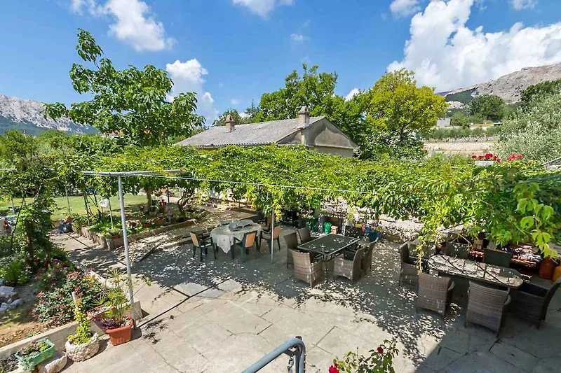 Baška. L' appartamento vacanze si trova in una trama del giardino chiuso, grande 50 mq con fiori, arbusti e alberi. Il padrone di casa vive solo temporaneamente nella casa, ma usa un ingresso separato. L'appartamento KRK BAS 181 (6 persone) che si trova nello stesso edificio. L'accesso avviene vicino a una strada secondaria (asfaltata). Parcheggio sulla proprietà. Parcheggio a 150 metri.