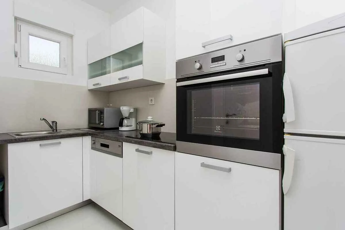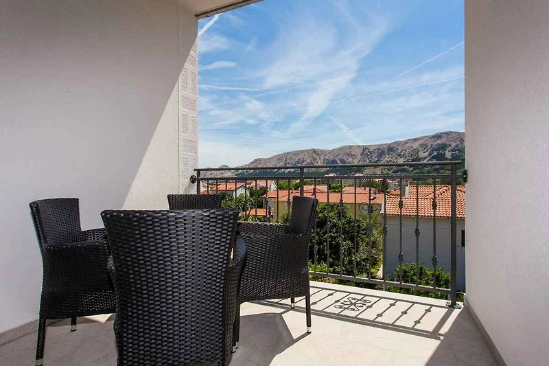 Acquisti 350 m, ristorante 400 m, centro città 400 m. La fermata più vicina del trasporto pubblico è a 1500 m. Discoteca a 11,8 km. Cinema a 12,1 km. Farmacia, banca ciascuna a 200 m. Sauna a 2,1 km. Piscina coperta, medico ciascuno a 300 m. Stazione ferroviaria a 33,2 km. Terme a 3,8 km. Aeroporto di Omišalj 44 km. Parco giochi per bambini 500 m. In estate: Mare Adriatico 400 m a Baška (spiaggia 400 m a Baška con sassi). Golf a 14,6 km. Tennis a 22,5 km.