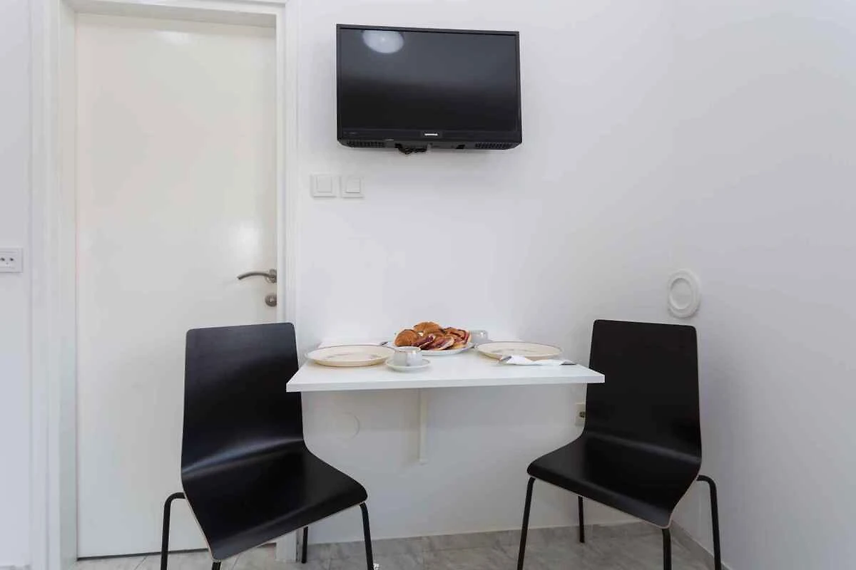 e conduce direttamente nel soggiorno/camera da letto. Cucina abitabile con 1 letto aggiuntivo su divano, TV, aria condizionata, angolo pranzo (2 posti) e accesso al balcone (6 mq). Camera da letto con 1 letto matrimoniale. Angolo cottura nella cucina abitabile con fornello elettrico, frigorifero (scomparto freezer) e macchina da caffè. Bagno con doccia, 1 lavabo e WC.